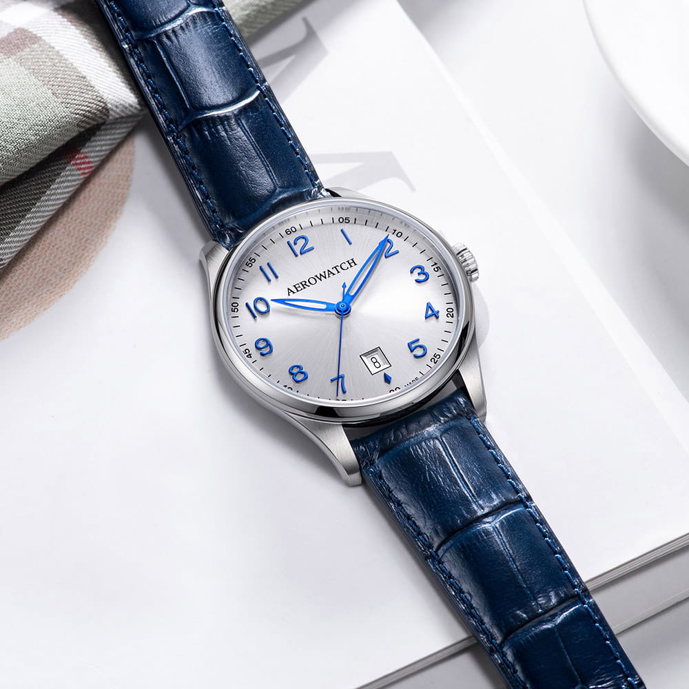 Мужские швейцарские часы с Aerowatch Renaissance Les Grandes Classiques 42997 AA01, кварцевый механизм с высокой точностью. Сапфировое стеклоСапфировое стеклоПрочный и надёжный материал из кристалла сапфира синтетического происхождения, характеризующийся особой твёрдостью и устойчивостью к царапинам и повреждениям. устойчивое к появлению царапин, обладающее высокой прозрачностью. Корпус изготовлен из нержавеющей стали. Серебристый sunray циферблат оснащен скелетонизированными стрелками и арабскими цифрами, окошко даты в положении 6 часов. Класс водозащиты: 50 метров, позволит защитить корпус от случайных брызг или капель дождя. Кожаный ремешок на стандартной застёжке.