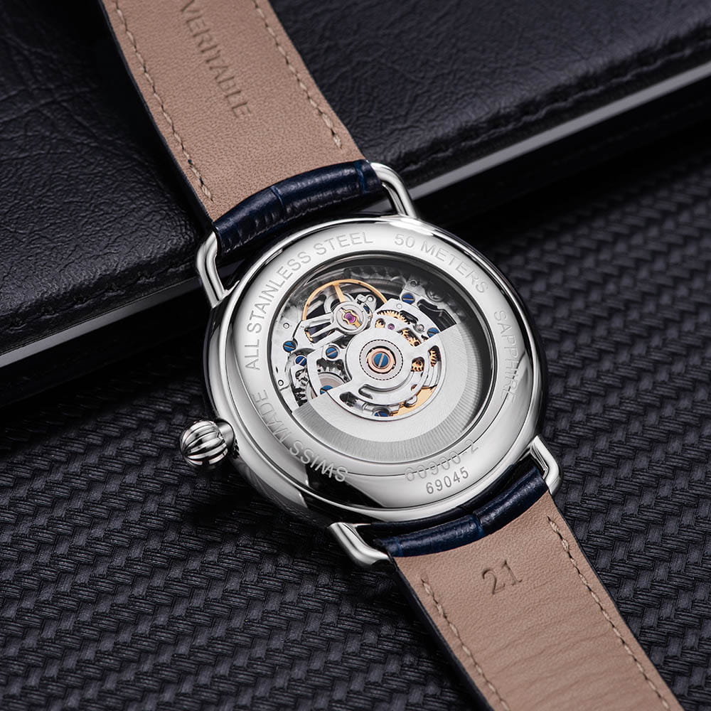 Мужские швейцарские механические часы с автоподзаводом Aerowatch 1942 60900 AA22, Сапфировое стеклоСапфировое стеклоПрочный и надёжный материал из кристалла сапфира синтетического происхождения, характеризующийся особой твёрдостью и устойчивостью к царапинам и повреждениям. устойчивое к появлению царапин, обладающее высокой прозрачностью. Корпус изготовлен из нержавеющей стали. В часах установлен автоматический калибр Sellita SW200-1 с 26 камнями. Механизм скелетонизирован и родирован, ручная обработка. Класс водозащиты: 50 метров, позволит защитить корпус от случайных брызг или капель дождя. Кожаный ремешок на стандартной застёжке.