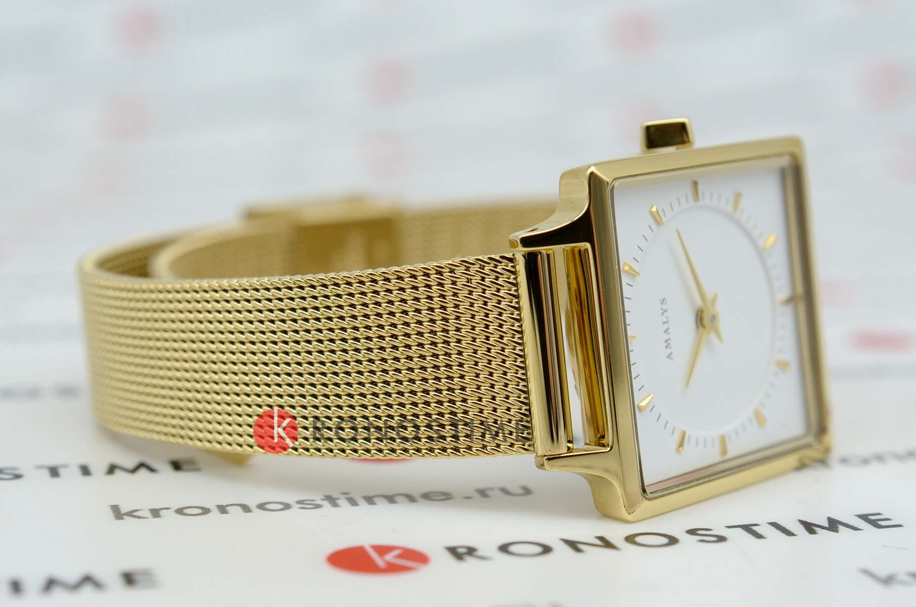 Amalys AMW-015 — женская модель с утончённой минималистичной эстетикой, где квадратный корпус с PVD-покрытиемPVDУльтратонкое покрытие наносится в технике вакуумного напыления, сочетает в себе нитрид титана особой прочности со слоем золота или оксида хрома. Несёт в себе декоративную или защитную функцию. размером 25 мм подчёркивает современный характер и чистоту линий. Механизм — точный кварцевый, обеспечивающий стабильный ход и надёжность в повседневном использовании. Поверхность циферблата оформлена в лаконичном стиле с тонкими метками и стрелками, создающими гармонию и визуальную лёгкость. Защитную функцию выполняет минеральное стеклоМинеральное стеклоМинеральное стекло представляет собой искусственно выращенный минерал кварца. Такое стекло отличается особой устойчивостью к повреждениям и царапинам. Уступает по некоторым качествам сапфировому стеклу., устойчивое к механическим воздействиям и сохраняющее читаемость при ежедневной носке. Браслет с PVD-покрытиемPVDУльтратонкое покрытие наносится в технике вакуумного напыления, сочетает в себе нитрид титана особой прочности со слоем золота или оксида хрома. Несёт в себе декоративную или защитную функцию. выполнен в виде «миланской сетки» шириной 14 мм, оснащён раскладным замкомРаскладной замокДанный вариант застежки используется только на часах с металлическим браслетом. Отличительная особенность такого крепления в том, что длина браслета становится универсальной и вы можете самостоятельно отрегулировать нужный вам размер – застежка просто двигается по браслету часов., его гибкая структура обеспечивает комфортное прилегание к запястью и визуальную утончённость. Единство корпуса и браслета создаёт целостный образ, а изысканная простота дизайна делает модель универсальной — она одинаково уместна и в деловой обстановке, и в повседневных сочетаниях.