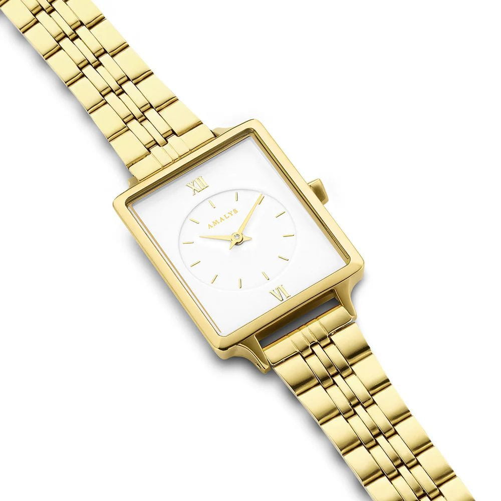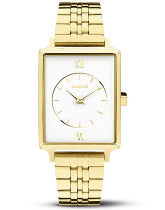 Amalys AMW-119 — женская модель с утончённой минималистичной эстетикой, где корпус с PVD-покрытиемPVDУльтратонкое покрытие наносится в технике вакуумного напыления, сочетает в себе нитрид титана особой прочности со слоем золота или оксида хрома. Несёт в себе декоративную или защитную функцию. размером 23 мм подчёркивает современный характер и чистоту линий. Механизм — точный кварцевый, обеспечивающий стабильный ход и надёжность в повседневном использовании. Поверхность циферблата оформлена в лаконичном стиле с тонкими метками и стрелками, создающими гармонию и визуальную лёгкость. Защитную функцию выполняет минеральное стеклоМинеральное стеклоМинеральное стекло представляет собой искусственно выращенный минерал кварца. Такое стекло отличается особой устойчивостью к повреждениям и царапинам. Уступает по некоторым качествам сапфировому стеклу., устойчивое к механическим воздействиям и сохраняющее читаемость при ежедневной носке. Браслет с PVD-покрытиемPVDУльтратонкое покрытие наносится в технике вакуумного напыления, сочетает в себе нитрид титана особой прочности со слоем золота или оксида хрома. Несёт в себе декоративную или защитную функцию., оснащён раскладным замкомРаскладной замокДанный вариант застежки используется только на часах с металлическим браслетом. Отличительная особенность такого крепления в том, что длина браслета становится универсальной и вы можете самостоятельно отрегулировать нужный вам размер – застежка просто двигается по браслету часов., его структура обеспечивает комфортное прилегание к запястью и визуальную утончённость. Единство корпуса и браслета создаёт целостный образ, а изысканная простота дизайна делает модель универсальной — она одинаково уместна и в деловой обстановке, и в повседневных сочетаниях.