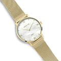 Amalys AMW-183 — женская модель с утончённым классическим дизайном, в которой сочетаются элегантность и практичность. Круглый корпус диаметром 33 мм выполнен из нержавеющей стали с PVD-покрытиемPVDУльтратонкое покрытие наносится в технике вакуумного напыления, сочетает в себе нитрид титана особой прочности со слоем золота или оксида хрома. Несёт в себе декоративную или защитную функцию., гармонирующим с браслетом шириной 16 мм в том же исполнении. Защитную функцию выполняет сапфировое стеклоСапфировое стеклоПрочный и надёжный материал из кристалла сапфира синтетического происхождения, характеризующийся особой твёрдостью и устойчивостью к царапинам и повреждениям., стойкое к царапинам и сохраняющее прозрачность. Механизм — кварцевый, обеспечивающий точность и стабильность хода. Стальной браслет с PVD-покрытиемPVDУльтратонкое покрытие наносится в технике вакуумного напыления, сочетает в себе нитрид титана особой прочности со слоем золота или оксида хрома. Несёт в себе декоративную или защитную функцию. миланского плетения на раскладном замкеРаскладной замокДанный вариант застежки используется только на часах с металлическим браслетом. Отличительная особенность такого крепления в том, что длина браслета становится универсальной и вы можете самостоятельно отрегулировать нужный вам размер – застежка просто двигается по браслету часов. который сочетает надёжность фиксации и удобство повседневного использования. Водозащита 3 ATM защищает часы от случайных брызг и дождя. Циферблат с римскими индексами и изящными стрелками подчёркивает классическую эстетику модели, делая её уместной как в повседневных образах, так и в торжественной обстановке.