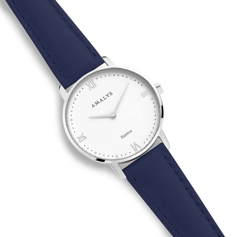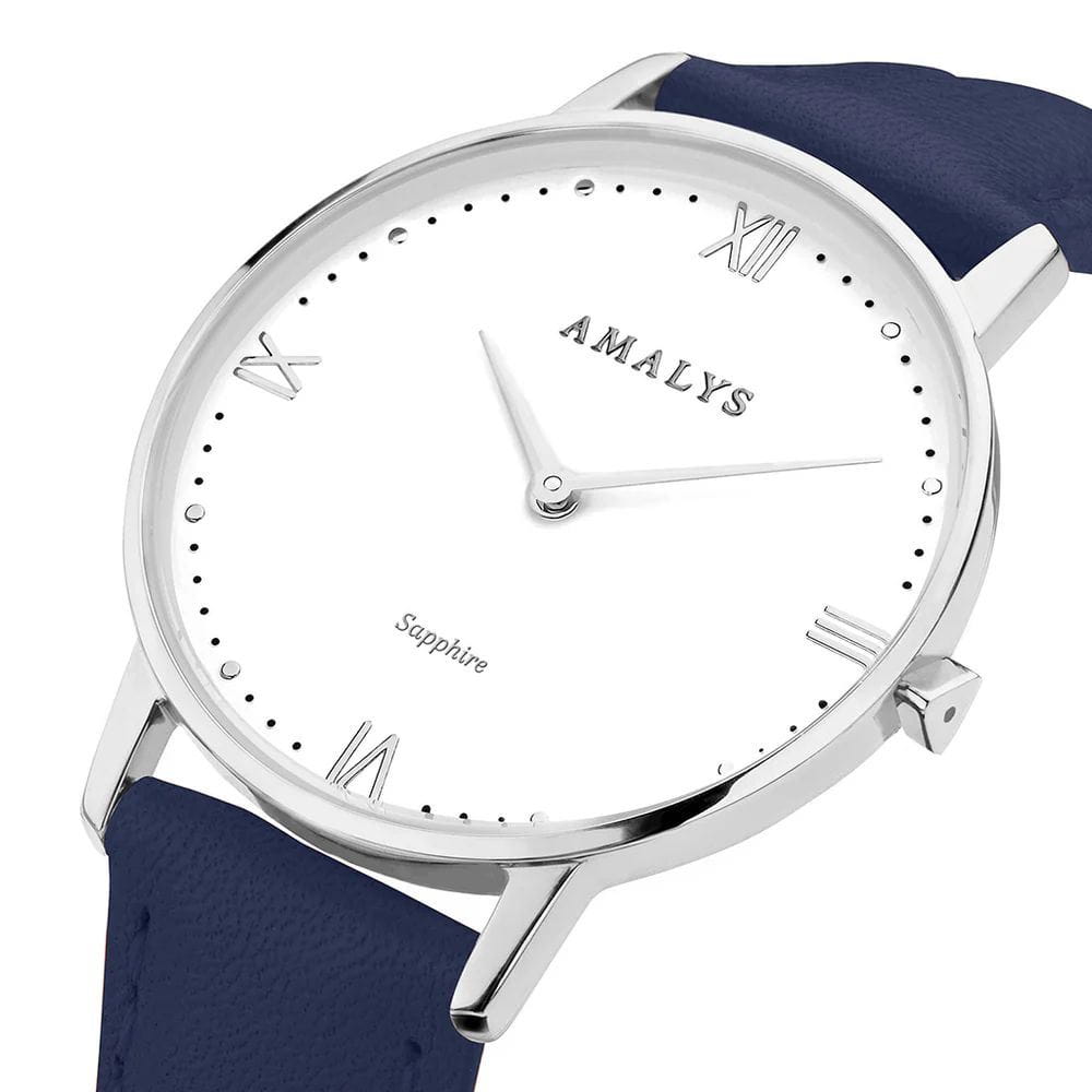 Amalys AMW-188 — женская модель с утончённым классическим дизайном, в которой сочетаются элегантность и практичность. Круглый корпус диаметром 33 мм выполнен из нержавеющей стали, гармонирующим с ремешком шириной 16 мм в том же исполнении. Защитную функцию выполняет сапфировое стеклоСапфировое стеклоПрочный и надёжный материал из кристалла сапфира синтетического происхождения, характеризующийся особой твёрдостью и устойчивостью к царапинам и повреждениям., стойкое к царапинам и сохраняющее прозрачность. Механизм — кварцевый, обеспечивающий точность и стабильность хода. Кожаный ремешок на стандартной застежке, который сочетает надёжность фиксации и удобство повседневного использования. Водозащита 3 ATM защищает часы от случайных брызг и дождя. Циферблат с римскими индексами и изящными стрелками подчёркивает классическую эстетику модели, делая её уместной как в повседневных образах, так и в торжественной обстановке.