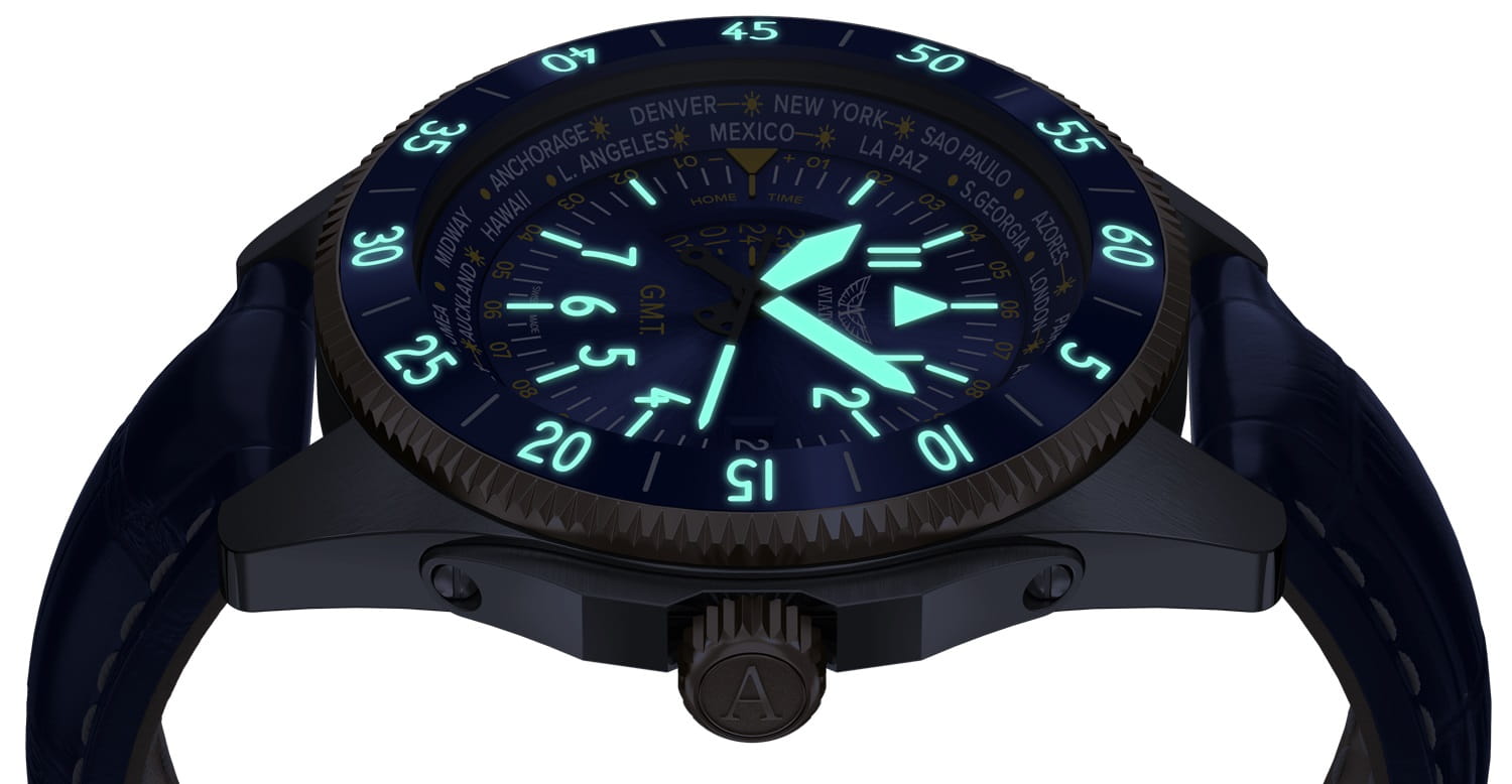 Aviator Airacobra GMT V.1.37.3.308.4 — сбалансированный швейцарский пилотский GMT, сочетающий техническую строгость с удобными функциями для путешествий. Корпус диаметром 42.8 мм из нержавеющей стали 316 L обеспечивает уверенное ощущение надёжности, а герметичность до 100 м защищает при любой погоде. Циферблат отличается детальной функциональностью: в центре — крупные арабские цифры и стрелки, покрытые люминесцентным покрытиемЛюминесцентное покрытиеПозволяет считывать показания времени в темноте. Производители наносят на стрелки, часовые индексы, безель или поверхность циферблата светонакопительный состав, дающий холодное свечение. Superluminova, обеспечивающими мгновенное считывание времени даже в темноте. На «3 часах» — окошко даты, а индикатор второго часового пояса (GMT) удобно расположен на «9 часах». С внешней стороны — вращающийся безельБезельВнешний ободок, закрепляющий стекло. В спортивных часах так называется поворотное кольцо с делениями на циферблате, выполняет роль таймера – замеряет отрезки времени на шкале. Неподвижный безель – элемент декора. Однонаправленно вращающийся безель на дайверских часах позволяет фиксировать моменты погружения и выныривания на поверхность. с PVD-покрытиемPVDУльтратонкое покрытие наносится в технике вакуумного напыления, сочетает в себе нитрид титана особой прочности со слоем золота или оксида хрома. Несёт в себе декоративную или защитную функцию. и керамической вставкой и градусной шкалой для секунд — идеален для расчёта времени пути или времени прибытия . Циферблат защищён сапфировым стекломСапфировое стеклоПрочный и надёжный материал из кристалла сапфира синтетического происхождения, характеризующийся особой твёрдостью и устойчивостью к царапинам и повреждениям. с антибликовым покрытиемАнтибликовое покрытиеСлой оксида металла в 0,13-0,3 микрон, благодаря которому стекло часов не бликует и не отражает свет. Антибликовое покрытие уменьшает отражение света в 10 раз, обеспечивая отличную читаемость показателей циферблата., гарантирующим чёткий обзор без отражений. Кожаный ремень со стандартной застежкой сочетает в себе комфорт, элегантность и практичность. Airacobra GMT — инструментальное сочетание часовой точности, удобной функциональности GMT и авиационной эстетики, предназначенное для тех, кто ценит практичность и стиль в равной мере.