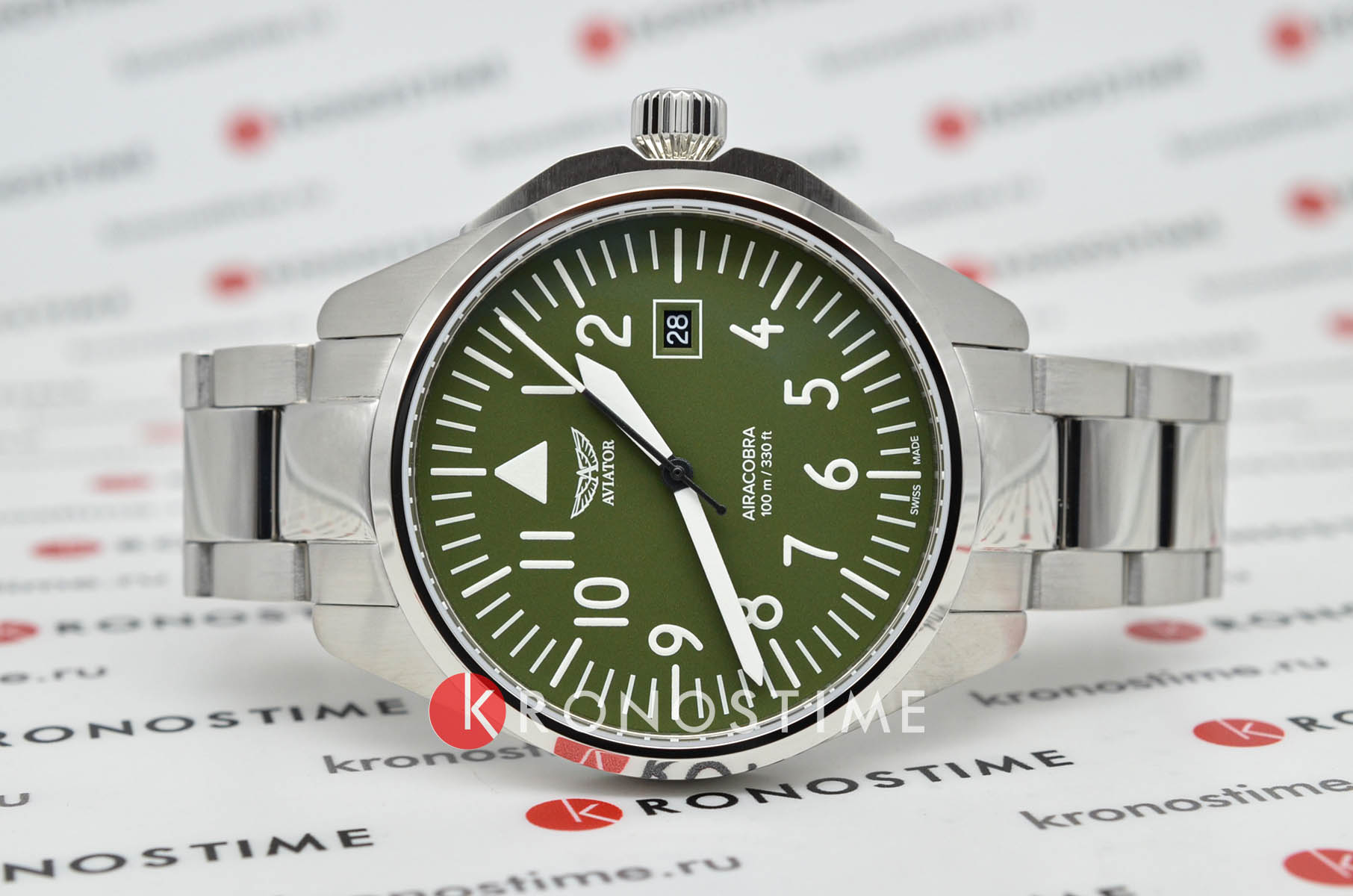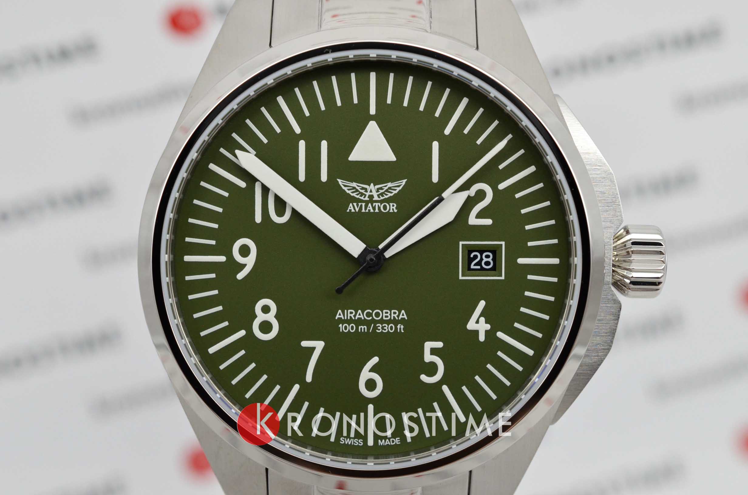 Aviator V.1.38.0.319.5 “Airacobra 43 Type A” — надёжные швейцарские пилотские часы с насыщенным функционалом и строгим авиационным дизайном. Корпус диаметром 42,8 мм выполнен из нержавеющей стали.