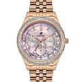 Американские женские часы с минеральным стекломМинеральное стеклоМинеральное стекло представляет собой искусственно выращенный минерал кварца. Такое стекло отличается особой устойчивостью к повреждениям и царапинам. Уступает по некоторым качествам сапфировому стеклу. Beverly Hills Polo Club BP3563X.480, кварцевый механизм с высокой точностью. Корпус и браслет часов изготовлены из нержавеющей стали с IP-покрытиемIP-покрытиеМетод ионного напыления. Демонстрирует повышенную устойчивость к истиранию, окислению и химическим веществам. Под воздействием высокого давления и температуры около 1500°C молекулы металла надёжно соединяются с частицами корпуса часов.. На циферблате расположены три дополнительных индикатора (24-х часовой формат времени, день недели и дата) и шкала тахиметрТахиметрРазмеченная шкала, располагается на ободке или безеле часов. Тахиметр позволяет рассчитать скорость на определённом участке пути, расстояние измеряется в километрах или милях.. Класс водозащиты: 50 метров, позволит защитить корпус от случайных брызг или капель дождя. Стальной браслет на застёжке бабочке. БезельБезельВнешний ободок, закрепляющий стекло. В спортивных часах так называется поворотное кольцо с делениями на циферблате, выполняет роль таймера – замеряет отрезки времени на шкале. Неподвижный безель – элемент декора. Однонаправленно вращающийся безель на дайверских часах позволяет фиксировать моменты погружения и выныривания на поверхность. и циферблат инкрустирован кристаллами.