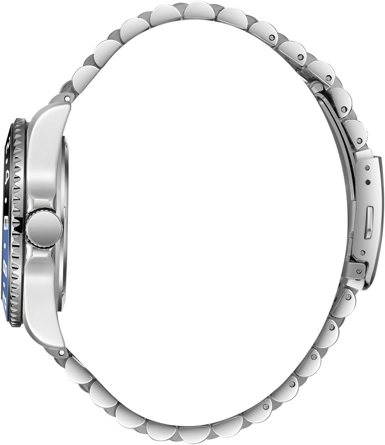 Мужские наручные часы Beverly Hills Polo Club BP3641X.357 с надёжным кварцевым механизмом. Минеральное стеклоМинеральное стеклоМинеральное стекло представляет собой искусственно выращенный минерал кварца. Такое стекло отличается особой устойчивостью к повреждениям и царапинам. Уступает по некоторым качествам сапфировому стеклу. устойчивое к мелким механическим повреждениям. Корпус часов изготовлен из стали. Стальной браслет на раскладной застёжкеРаскладная застёжкаТакой тип застёжки используется только на браслетах из металла. Она никогда не раскрывается полностью, происходит разделение на 2 и более частей. Раскладывающая застёжка снизит вероятность потери часов к минимуму.. Вращающийся стальной безельБезельВнешний ободок, закрепляющий стекло. В спортивных часах так называется поворотное кольцо с делениями на циферблате, выполняет роль таймера – замеряет отрезки времени на шкале. Неподвижный безель – элемент декора. Однонаправленно вращающийся безель на дайверских часах позволяет фиксировать моменты погружения и выныривания на поверхность. с IP-покрытиемIP-покрытиеМетод ионного напыления. Демонстрирует повышенную устойчивость к истиранию, окислению и химическим веществам. Под воздействием высокого давления и температуры около 1500°C молекулы металла надёжно соединяются с частицами корпуса часов.. Стрелки и метки с люминесцентным покрытиемЛюминесцентное покрытиеПозволяет считывать показания времени в темноте. Производители наносят на стрелки, часовые индексы, безель или поверхность циферблата светонакопительный состав, дающий холодное свечение.. Класс водозащиты: 50 метров, позволит защитить корпус от случайных брызг или капель дождя.