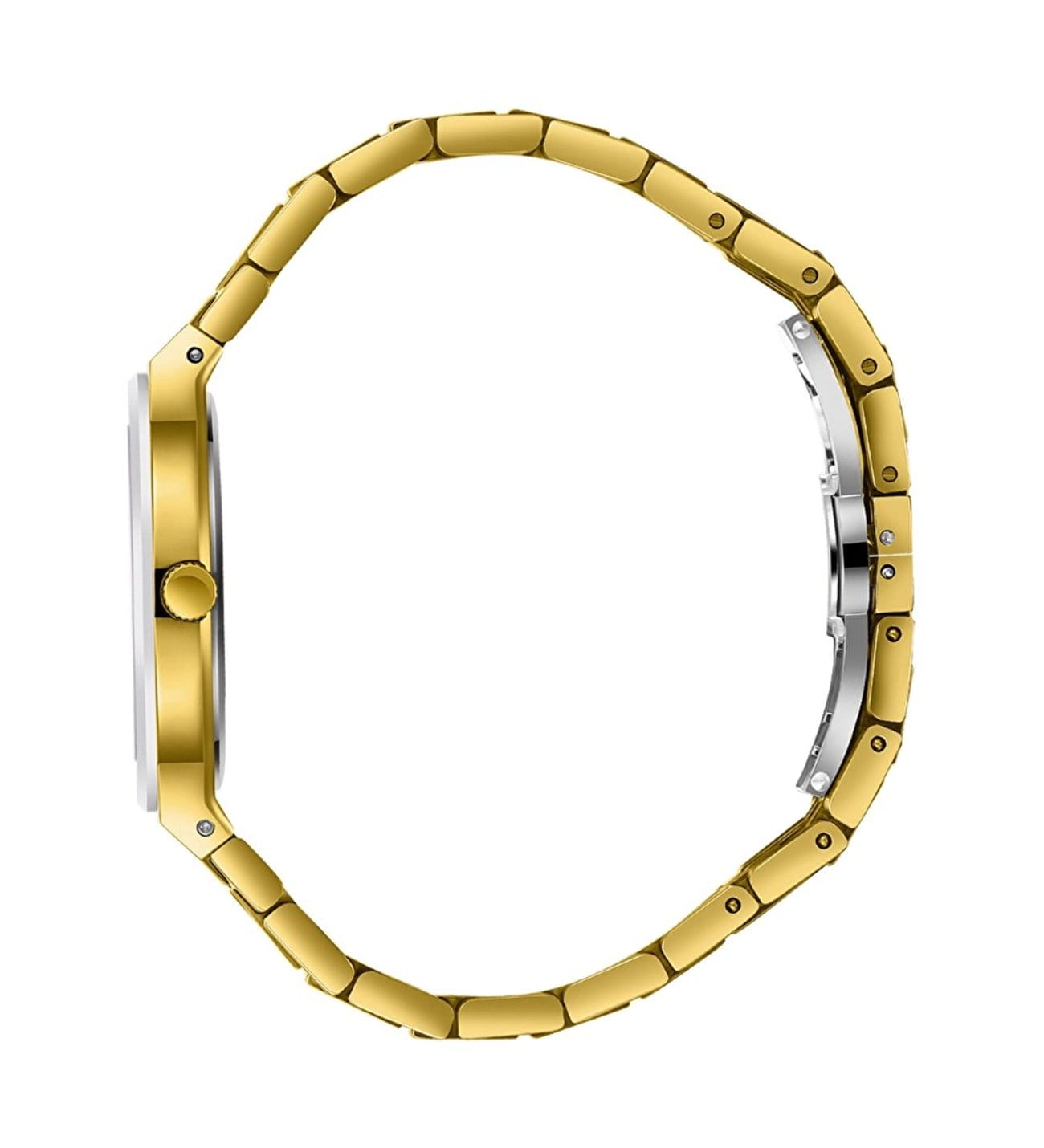 Часы дополнены стальным браслетом с IP-покрытиемIP-покрытиеМетод ионного напыления. Демонстрирует повышенную устойчивость к истиранию, окислению и химическим веществам. Под воздействием высокого давления и температуры около 1500°C молекулы металла надёжно соединяются с частицами корпуса часов. и удобной застёжкой-бабочкойЗастёжка "бабочка"Такой вид застёжки дополняется предохранителями, помогающими избежать случайного раскрытия браслета. Обладают изящным исполнением. , обеспечивающей комфорт и надёжную фиксацию на руке.