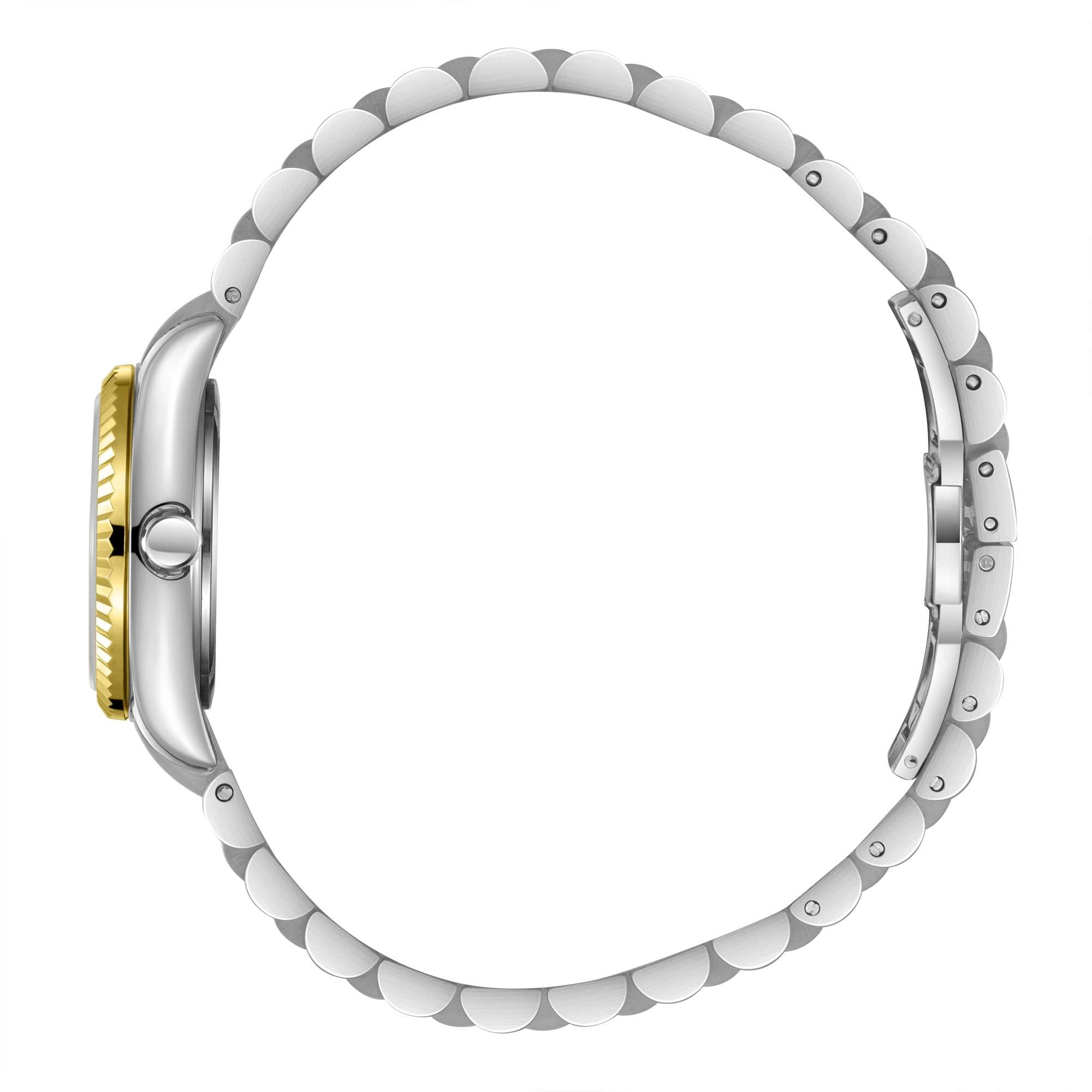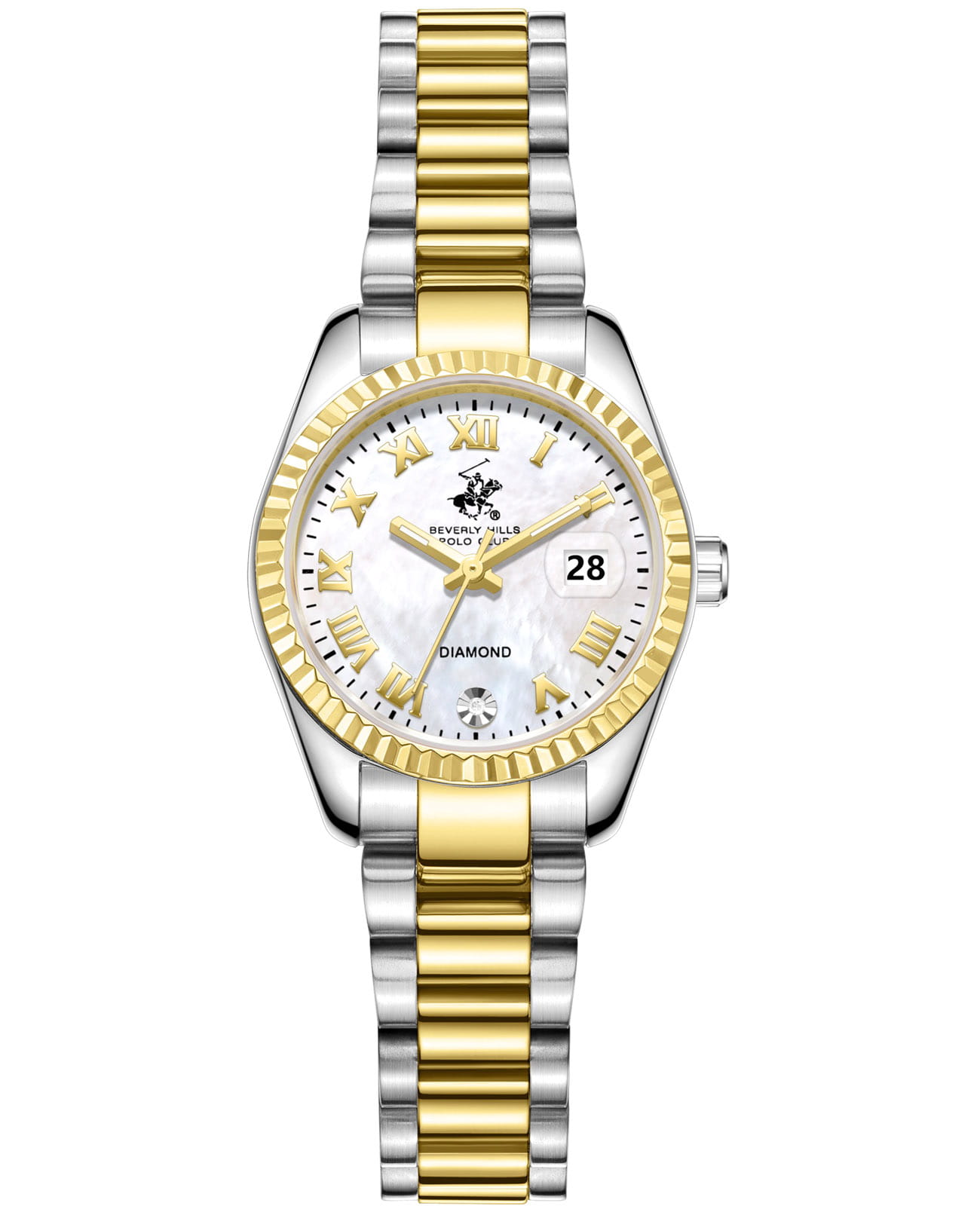 Американские женские часы Beverly Hills Polo Club BP3819X.220 - это стильный женский аксессуар, который сочетает элегантный дизайн и практичность. Корпус выполнен из нержавеющей стали серебристого цвета, диаметром 28 мм, что обеспечивает долговечность и утончённый внешний вид. Надежное минеральное стеклоМинеральное стеклоМинеральное стекло представляет собой искусственно выращенный минерал кварца. Такое стекло отличается особой устойчивостью к повреждениям и царапинам. Уступает по некоторым качествам сапфировому стеклу. с сапфировым покрытием защищает циферблат от царапин и обеспечивает долговечность. Метки в виде римский цифр, на 6 часов инкрустирован синтетический бриллиант. Неподвижный безельБезельВнешний ободок, закрепляющий стекло. В спортивных часах так называется поворотное кольцо с делениями на циферблате, выполняет роль таймера – замеряет отрезки времени на шкале. Неподвижный безель – элемент декора. Однонаправленно вращающийся безель на дайверских часах позволяет фиксировать моменты погружения и выныривания на поверхность. с IP-покрытиемIP-покрытиеМетод ионного напыления. Демонстрирует повышенную устойчивость к истиранию, окислению и химическим веществам. Под воздействием высокого давления и температуры около 1500°C молекулы металла надёжно соединяются с частицами корпуса часов. золотистого цвета. Модель оснащена кварцевым механизмом, обеспечивающим высокую точность хода. Стрелки с люминесцентным покрытиемЛюминесцентное покрытиеПозволяет считывать показания времени в темноте. Производители наносят на стрелки, часовые индексы, безель или поверхность циферблата светонакопительный состав, дающий холодное свечение.. Стальной браслет на застёжке-бабочке с кнопкамиЗастёжка "бабочка"Такой вид застёжки дополняется предохранителями, помогающими избежать случайного раскрытия браслета. Обладают изящным исполнением. обеспечивает комфортное ношение. Водозащита 30 метров позволит защитить корпус от случайных брызг или капель дождя. Эта модель – отличный выбор для тех, кто ищет сочетание стиля, качества и функциональности. Часы станут не только полезным аксессуаром, но и выразительным элементом вашего имиджа.