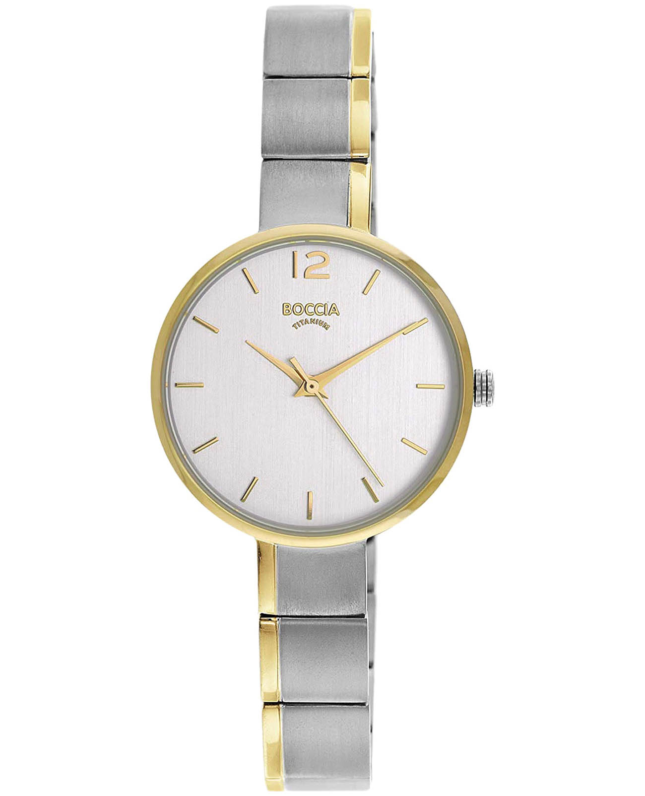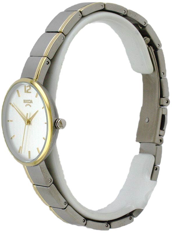 Женские немецкие титановые часы Boccia Titanium 3308-02 с надёжным кварцевым механизмом. Корпус изготовлен из титана диаметром 29мм подчеркивает современный дизайн модели. Минеральное стеклоМинеральное стеклоМинеральное стекло представляет собой искусственно выращенный минерал кварца. Такое стекло отличается особой устойчивостью к повреждениям и царапинам. Уступает по некоторым качествам сапфировому стеклу. устойчивое к мелким механическим повреждениям. Титановый браслет на раскладной застёжкеРаскладная застёжкаТакой тип застёжки используется только на браслетах из металла. Она никогда не раскрывается полностью, происходит разделение на 2 и более частей. Раскладывающая застёжка снизит вероятность потери часов к минимуму. с частичным PVD-покрытиемPVDУльтратонкое покрытие наносится в технике вакуумного напыления, сочетает в себе нитрид титана особой прочности со слоем золота или оксида хрома. Несёт в себе декоративную или защитную функцию. обеспечивает комфортное ношение. Циферблат с метками в виде штрихов. БезельБезельВнешний ободок, закрепляющий стекло. В спортивных часах так называется поворотное кольцо с делениями на циферблате, выполняет роль таймера – замеряет отрезки времени на шкале. Неподвижный безель – элемент декора. Однонаправленно вращающийся безель на дайверских часах позволяет фиксировать моменты погружения и выныривания на поверхность. с PVD-покрытиемPVDУльтратонкое покрытие наносится в технике вакуумного напыления, сочетает в себе нитрид титана особой прочности со слоем золота или оксида хрома. Несёт в себе декоративную или защитную функцию.. Класс водозащиты: 50 метров позволит защитить корпус от случайных брызг или капель дождя. Эти часы станут отличным выбором для тех, кто ценит стильный дизайн и функциональность в одном аксессуаре, подходят для ежедневного использования.
