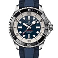 Мужские водонепроницаемые швейцарские часы Breitling Superocean Automatic 44 A17376211C1S1, механический механизм (автоматический калибр) с высокой точностью. Сапфировое стеклоСапфировое стеклоПрочный и надёжный материал из кристалла сапфира синтетического происхождения, характеризующийся особой твёрдостью и устойчивостью к царапинам и повреждениям. устойчивое к появлению царапин, обладающее высокой прозрачностью. Класс водозащиты: 300 метров, позволит плавать, нырять и заниматься другими водными видами спорта. Корпус часов изготовлен из стали. Силиконовый ремешок с раскладной застёжкойРаскладная застёжкаТакой тип застёжки используется только на браслетах из металла. Она никогда не раскрывается полностью, происходит разделение на 2 и более частей. Раскладывающая застёжка снизит вероятность потери часов к минимуму.. Стрелки и метки с люминесцентным покрытиемЛюминесцентное покрытиеПозволяет считывать показания времени в темноте. Производители наносят на стрелки, часовые индексы, безель или поверхность циферблата светонакопительный состав, дающий холодное свечение.. Широкие стрелки и индексы с люминесцентным покрытиемЛюминесцентное покрытиеПозволяет считывать показания времени в темноте. Производители наносят на стрелки, часовые индексы, безель или поверхность циферблата светонакопительный состав, дающий холодное свечение. обеспечивают легкую читаемость под водой. БезельБезельВнешний ободок, закрепляющий стекло. В спортивных часах так называется поворотное кольцо с делениями на циферблате, выполняет роль таймера – замеряет отрезки времени на шкале. Неподвижный безель – элемент декора. Однонаправленно вращающийся безель на дайверских часах позволяет фиксировать моменты погружения и выныривания на поверхность. из стали с керамической инкрустацией, защищенный от царапин, никогда не изнашивается и не выцветает. Лучше всего то, что это больше не просто часы для дайвинга — занимайтесь с ними серфингом, плавайте с ними, заходите с ними в пляжный бар, а затем надевайте их на ужин. Superocean идеально сочетает ностальгию по своему наследию со свежим внешним видом.