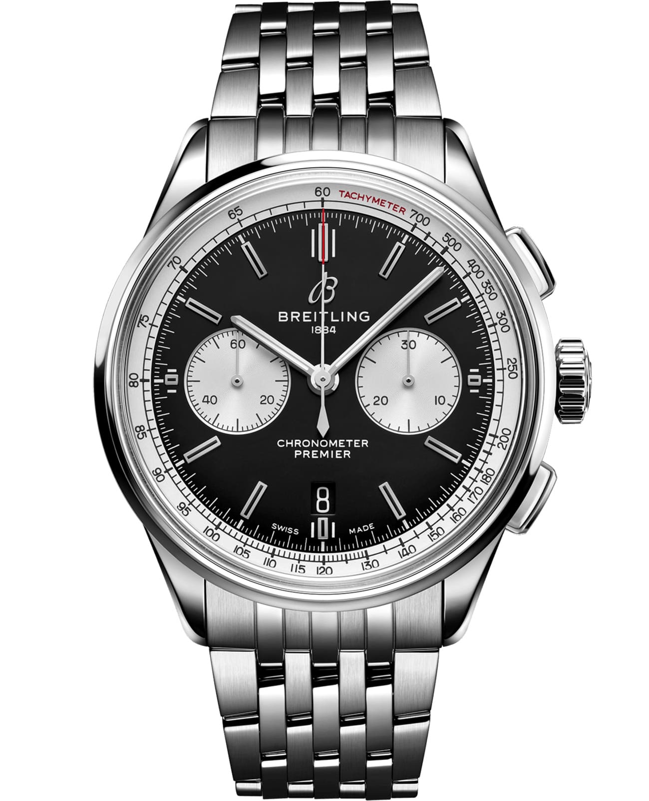 Корпус часов Premier B01 Chronograph 42 может быть выполнен из различных материалов, в том числе нержавеющей стали и 18-каратного розового золота. Покупатель может выбрать одну из понравившихся ему версий с циферблатом bi-compax черного, антрацитового, серебристого или синего цвета. Модель предлагается в комплекте с браслетом или ремешком из нубука или кожи аллигатора с классической или раскладной застежкой.