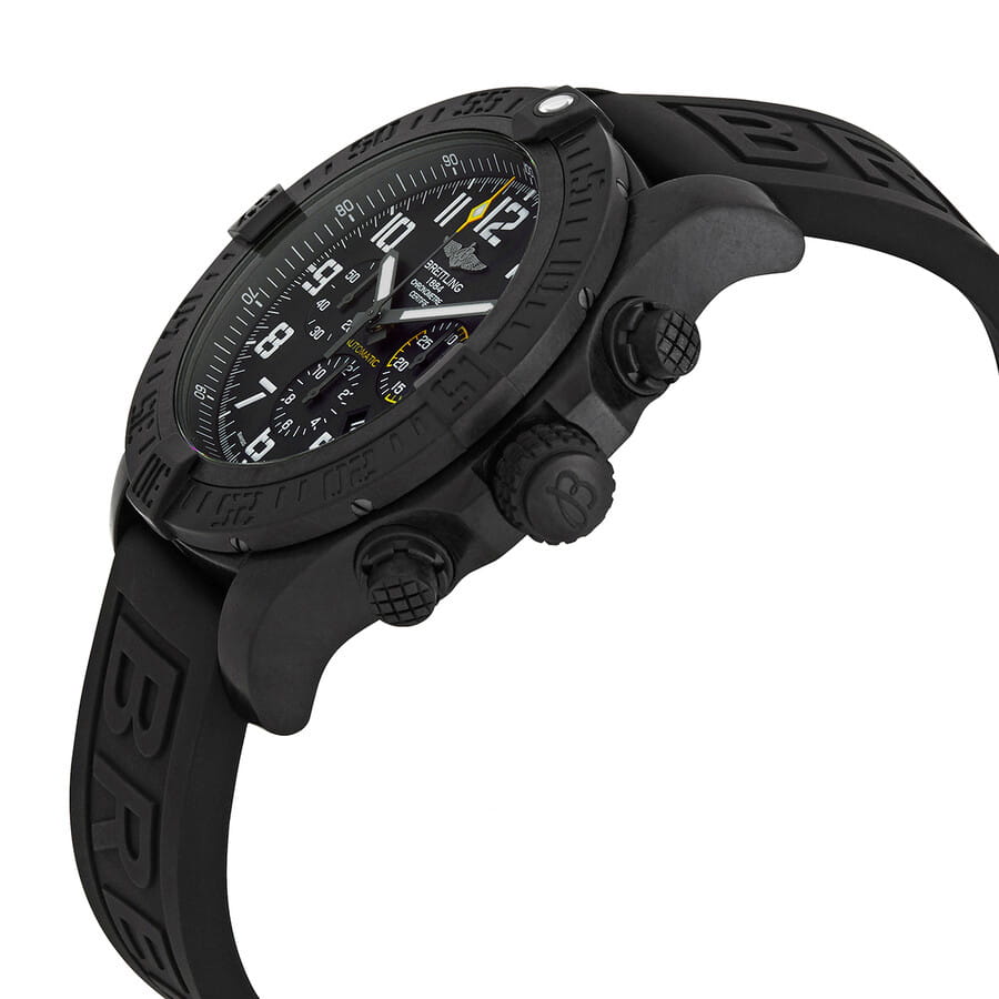 Мужские швейцарские часы Breitling Avenger Hurricane 12H XB0170E41B1S1, механический мануфактурный механизм Breitling Caliber 01 с высокой точностью. Выпуклое сапфировое стекло устойчивое к появлению царапин, обладающее высокой прозрачностью и антибликовым покрытием с обеих сторон. Корпус черного цвета, изготовлен из Breitlight®, прочного сверхлегкого полимера, вес которого в 3,3 раза меньше, чем у титана, и в 5,8 раза меньше, чем у нержавеющей стали.