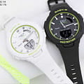 Белый аксессуар с салатовыми деталями станет мини-тренером на беговой дорожке. Он оснащён функцией высокочувствительного шагомера с измерением количества от 0 до 999999 шагов. Графическое отображение результатов позволяет анализировать эффективность тренировок. Часы синхронизируются со смартфоном с помощью технологии Bluetooth 4.0BluetoothСовременная технология, позволяющая синхронизировать часы с телефоном и переносить данные. Часы с Bluetooth расширяют возможности вашего смартфона и делают его использование ещё более удобным. для передачи и хранения информации, корректировки времени. Японский кварцевый механизм. Батарейка рассчитана на 2 года работы. Противоударный корпусУдаропрочный корпусМеханизм заключён в корпус, выполненный из современных материалов, устойчивых к ударам, механическим повреждениям и падению с высоты: инновационный пластик, карбон, нержавеющая сталь, титан. и ремешок из полимерного пластика. Минеральное стекло. Водостойкость 10 бар. Светодиодная подсветкаСветодиодная подсветкаСветодиодная или LED-подсветка обеспечивает появление яркого холодного свечения за счёт LED-элементов - маленьких лампочек. Они потребляют минимальное количество энергии, чаще всего можно встретить 1 светодиод, в нижней части циферблата. белого цвета. Будильник, , ежечасный сигнал, мировое времяМировое время Полезное часовое усложнение, отображающее время в основных городах и известных областях по всему миру, оно связано с часовыми поясами, удобно для путешественников и бизнесменов. 300 городов, поиск телефона, таймер. Габариты: 41,4 x 49,6 x 12,6 мм.