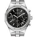 Мужские кварцевые часы-хронографХронографФункция позволяет измерять отрезки времени с особой точностью: часы, минуты, секунды. Верным признаком хронографа является наличие на циферблате 3 дополнительных окошек-счётчиков. Bulova Classic 96B410  – отражающий идеальное сочетание современного дизайна, надёжности и функциональности. Элегантный облик станет превосходным завершением образа, наделив его индивидуальным характером. Корпус из нержавеющей стали, диаметром 44 мм идеально сбалансирован и элегантен. Минеральное стеклоМинеральное стеклоМинеральное стекло представляет собой искусственно выращенный минерал кварца. Такое стекло отличается особой устойчивостью к повреждениям и царапинам. Уступает по некоторым качествам сапфировому стеклу. защищает циферблат от царапин и устойчивое к мелким механическим повреждениям. Шкала тахиметраТахиметрРазмеченная шкала, располагается на ободке или безеле часов. Тахиметр позволяет рассчитать скорость на определённом участке пути, расстояние измеряется в километрах или милях. на циферблате. Стальной браслет на раскладной застёжкеРаскладная застёжкаТакой тип застёжки используется только на браслетах из металла. Она никогда не раскрывается полностью, происходит разделение на 2 и более частей. Раскладывающая застёжка снизит вероятность потери часов к минимуму. обеспечивает комфортное ношение. Стрелки и метки с люминесцентным покрытиемЛюминесцентное покрытиеПозволяет считывать показания времени в темноте. Производители наносят на стрелки, часовые индексы, безель или поверхность циферблата светонакопительный состав, дающий холодное свечение. позволяющие легко определять время даже в темноте. Водозащита 100 метров, позволит плавать, нырять и заниматься другими водными видами спорта. Окошко даты находится в положении между 4 и 5 часов. Эта модель – отличный выбор для тех, кто ищет сочетание стиля, качества и функциональности. Часы станут не только полезным аксессуаром, но и выразительным элементом вашего имиджа.