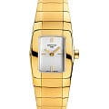 Минималистичная модель представлена в золотистом цвете, чего удалось добиться благодаря нанесению PVD-покрытияPVDУльтратонкое покрытие наносится в технике вакуумного напыления, сочетает в себе нитрид титана особой прочности со слоем золота или оксида хрома. Несёт в себе декоративную или защитную функцию.. Швейцарский кварцевый механизм ETA 901.001 характеризуется высокой точностью хода. Сапфировое стекло устойчиво к царапинам. Водостойкость охраняется при давлении до 10 бар.