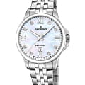 Женские наручные часы Candino Elegance C4766/1 с надёжным кварцевым механизмом. Корпус и браслет часов изготовлены из нержавеющей стали. Сапфировое стеклоСапфировое стеклоПрочный и надёжный материал из кристалла сапфира синтетического происхождения, характеризующийся особой твёрдостью и устойчивостью к царапинам и повреждениям. повышенной прозрачности, устойчивое к мелким механическим повреждениям. Стальной браслет на раскладной застёжкеРаскладная застёжкаТакой тип застёжки используется только на браслетах из металла. Она никогда не раскрывается полностью, происходит разделение на 2 и более частей. Раскладывающая застёжка снизит вероятность потери часов к минимуму.. Стрелки и метки с люминесцентным покрытиемЛюминесцентное покрытиеПозволяет считывать показания времени в темноте. Производители наносят на стрелки, часовые индексы, безель или поверхность циферблата светонакопительный состав, дающий холодное свечение.. Перламутровый циферблат инкрустирован кристаллами. Класс водозащиты: 50 метров, позволит защитить корпус от случайных брызг или капель дождя. Окошко даты находится в положении 6 часов.