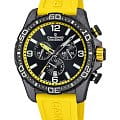 Корпус часов изготовлен из карбона, что придаёт им прочность и долговечность. Класс водозащиты 100 метров позволяет носить часы в условиях активного водного спорта, включая плавание, ныряние и другие водные виды спорта. Каучуковый ремешок на стандартной застёжке обеспечивает комфортное и надёжное крепление на запяте. Стрелки и метки с люминесцентным покрытиемЛюминесцентное покрытиеПозволяет считывать показания времени в темноте. Производители наносят на стрелки, часовые индексы, безель или поверхность циферблата светонакопительный состав, дающий холодное свечение.. Окошко даты находится в положении 6 часов.