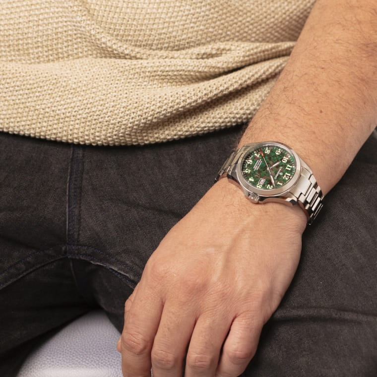 Мужские кварцевые часы Candino C4785/3 — это стильный и надёжный аксессуар швейцарского производства, сочетающий элегантность и функциональность. Корпус круглой формы выполнен из нержавеющей стали и защищён сапфировым стекломСапфировое стеклоПрочный и надёжный материал из кристалла сапфира синтетического происхождения, характеризующийся особой твёрдостью и устойчивостью к царапинам и повреждениям., устойчивым к царапинам. Циферблат зелёного цвета оформлен штрихами в качестве индикации, а стрелки и метки оснащены люминесцентным покрытиемЛюминесцентное покрытиеПозволяет считывать показания времени в темноте. Производители наносят на стрелки, часовые индексы, безель или поверхность циферблата светонакопительный состав, дающий холодное свечение., обеспечивающим хорошую читаемость в темноте. Окошко даты расположено на отметке 3 часа, что делает часы практичными в повседневном использовании. Браслет из нержавеющей стали фиксируется на раскладной застёжкеРаскладная застёжкаТакой тип застёжки используется только на браслетах из металла. Она никогда не раскрывается полностью, происходит разделение на 2 и более частей. Раскладывающая застёжка снизит вероятность потери часов к минимуму., обеспечивая удобство и надёжность ношения. Водонепроницаемость 50 м позволяет использовать часы в повседневных условиях, защищая от случайных брызг и капель дождя. Модель подчёркивает индивидуальность и хороший вкус владельца, оставаясь универсальным выбором для любого образа. В комплекте предусмотрены два ремешка из кожи и текстиля.