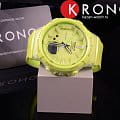 Наручные часы в зелёном цвете оснащены шагомером, счётчик измеряет количество шагов от 0 до 999999. Предусмотрена возможность установить цель на день. Размечена специальная шкала вокруг безеляБезельВнешний ободок, закрепляющий стекло. В спортивных часах так называется поворотное кольцо с делениями на циферблате, выполняет роль таймера – замеряет отрезки времени на шкале. Неподвижный безель – элемент декора. Однонаправленно вращающийся безель на дайверских часах позволяет фиксировать моменты погружения и выныривания на поверхность., достижение отметки «Goal» означает, что план выполнен. Ударопрочный корпусУдаропрочный корпусМеханизм заключён в корпус, выполненный из современных материалов, устойчивых к ударам, механическим повреждениям и падению с высоты: инновационный пластик, карбон, нержавеющая сталь, титан. сделан из прочного полимера, устойчив к падению, вибрации. Работу японского кварцевого механизма обеспечивает батарейка, рассчитанная на 2 года. Минеральное закаленное стекло. Светодиодная подсветкаСветодиодная подсветкаСветодиодная или LED-подсветка обеспечивает появление яркого холодного свечения за счёт LED-элементов - маленьких лампочек. Они потребляют минимальное количество энергии, чаще всего можно встретить 1 светодиод, в нижней части циферблата.. Водостойкость 10 бар. Включение и выключение звука кнопок. Автокалендарь, будильник, секундомер, таймер обратного отсчёта. Указание второго часового пояса. Габариты: 42,6 x 45,2 x 13,3 мм.