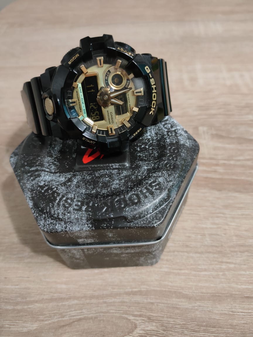 Наручные часы серии G-Classic Collection сразу бросаются в глаза за счёт золотистого циферблата с продуманным расположением деталей. Универсальный аксессуар представлен в спортивном стиле и обладает крупной индикацией времени. Глянцевый противоударный корпусУдаропрочный корпусМеханизм заключён в корпус, выполненный из современных материалов, устойчивых к ударам, механическим повреждениям и падению с высоты: инновационный пластик, карбон, нержавеющая сталь, титан. и ремешок изготовлены из полимерного пластика, такой материал высоко ценится за счёт устойчивости к ударам и повреждениям. Японский кварцевый механизм работает от батарейки CR2016, рассчитанной на 5 лет использования. Минеральное стекло. Удобная кнопка светодиодной подсветкиСветодиодная подсветкаСветодиодная или LED-подсветка обеспечивает появление яркого холодного свечения за счёт LED-элементов - маленьких лампочек. Они потребляют минимальное количество энергии, чаще всего можно встретить 1 светодиод, в нижней части циферблата. на лицевой части. Водозащита 200 метров. 12/24-отображение времени. Секундомер, мировое времяМировое время Полезное часовое усложнение, отображающее время в основных городах и известных областях по всему миру, оно связано с часовыми поясами, удобно для путешественников и бизнесменов. - 31 часовой пояс, таймер, хронографХронографФункция позволяет измерять отрезки времени с особой точностью: часы, минуты, секунды. Верным признаком хронографа является наличие на циферблате 3 дополнительных окошек-счётчиков., 5 будильников, UTCUTCВсемирное кординационное время, не имеющее привязки к географическому положению Гринвича, основывается на атомном отсчёте времени. Регулировка времени осуществляется более точно, чем устаревшее GMT.
