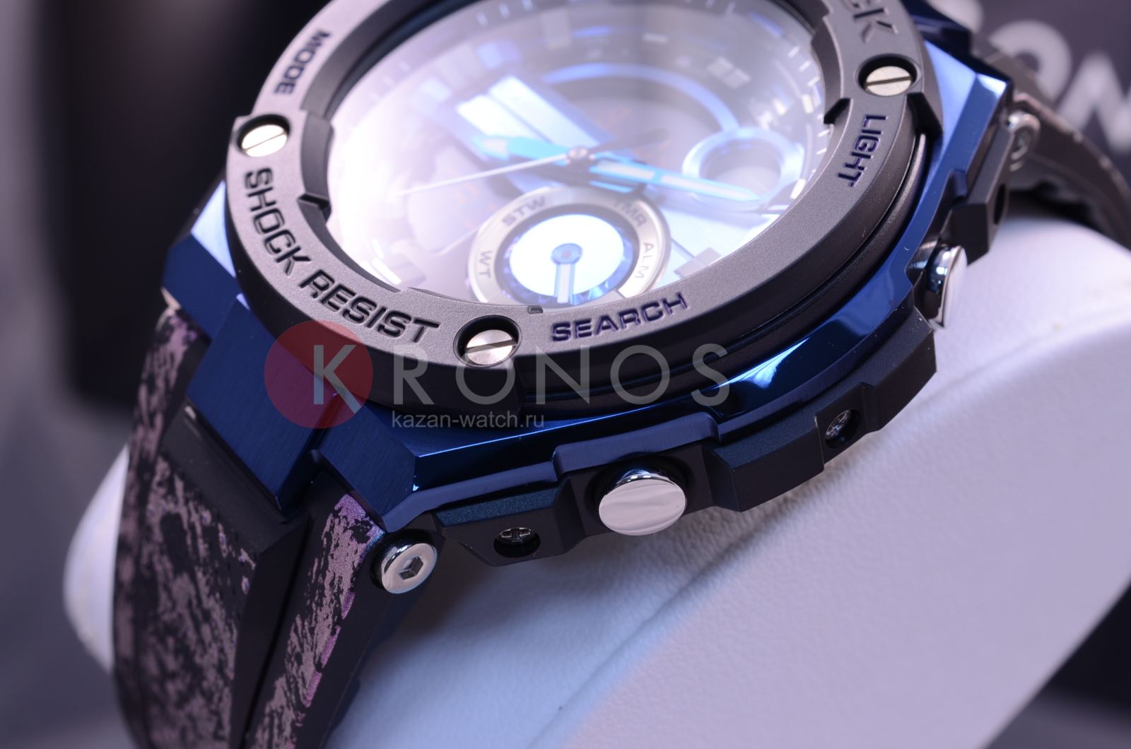 Cтильные мужские японские наручные часы. Корпус часов сделан из высокопрочной стали с PVD покрытием синего цвета. Минеральное стекло, устойчивое к появлению царапин. Часы GST-200CP-2A снабжены множеством дополнительных функций - секундомер, таймер обратного отсчета, календарь, полностью автоматическая подсветка с автоматической регулируемой автоматизацией. Ежечасный сигнал, повтор сигнала будильника, мировое время. Водонепроницаемость часов до 200 метров (возможны занятия дайвингом). Особый шарм часам придает 3D дизайн - углубленные, объемные индексы и стрелки.