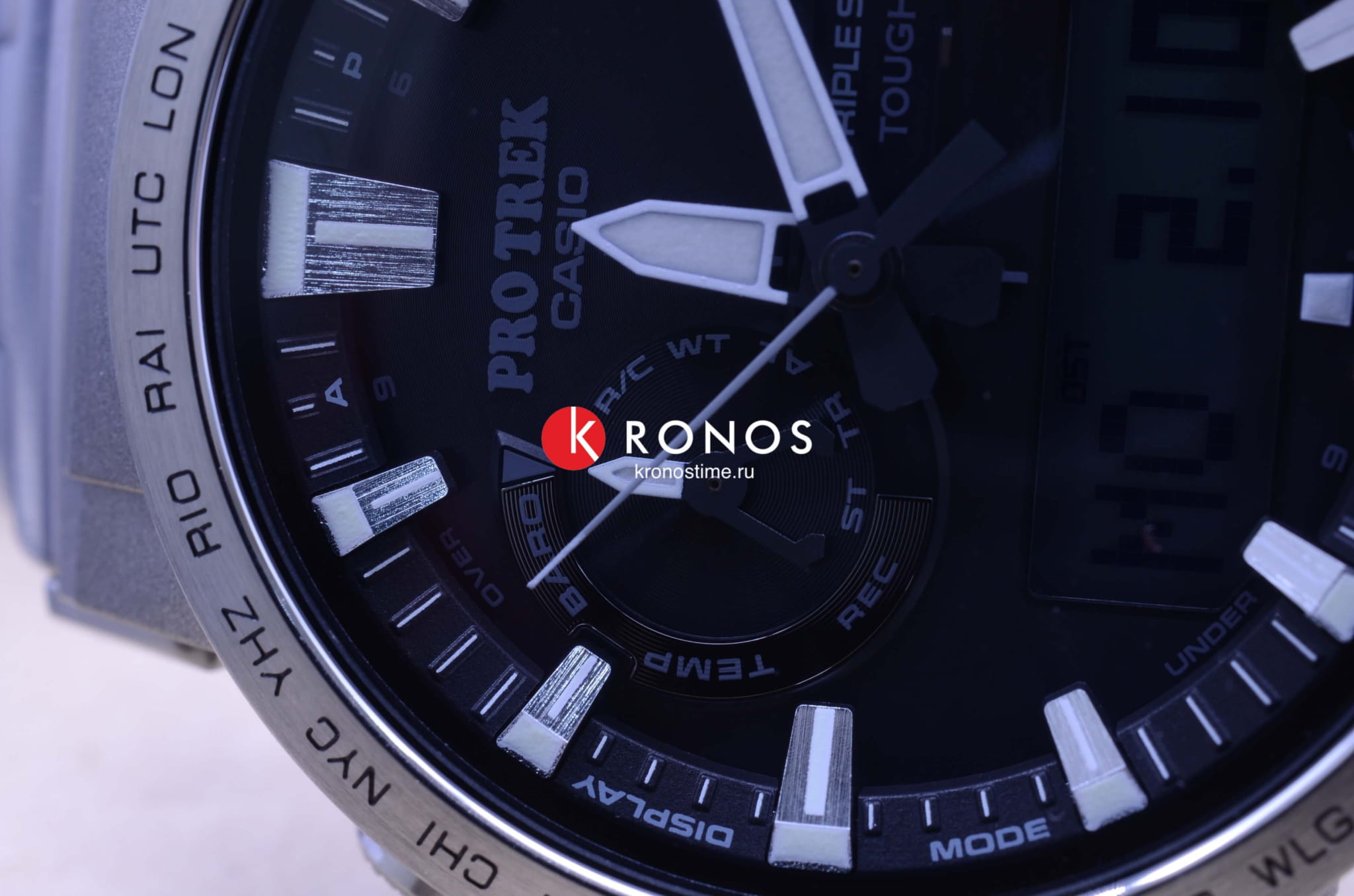 Наручные часы представлены в компактном варианте, если сравнивать их с предыдущими представителями серии PRW-6000. Они отличаются улучшенной конструкцией ударопрочного корпусаУдаропрочный корпусМеханизм заключён в корпус, выполненный из современных материалов, устойчивых к ударам, механическим повреждениям и падению с высоты: инновационный пластик, карбон, нержавеющая сталь, титан., выполненного из полимерного материала. Аксессуар комплектуется браслетом из титанового сплава, характеризующегося лёгкостью и противоаллергенными свойствами. Впечатляющий функционал: приём радиосигнала, секундомер, цифровой компас, мировое времяМировое время Полезное часовое усложнение, отображающее время в основных городах и известных областях по всему миру, оно связано с часовыми поясами, удобно для путешественников и бизнесменов. , барометр, термометр, высотомер. Технология с отображением состояния уровня заряда батарейки. Устойчивость к пониженным температурам. Водонепроницаемость до 10 бар. Габариты: 50,5 x 47,2 x 13,3 мм.