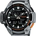 Аналоговый и цифровой вариант отображения времени, летнее/зимнее время, мировое время (есть Москва), секундомер (с возможностью учета времени круга и финиша двух спортсменов), таймер (без автоповтора), 5 будильников, сигнал начала часа, электролюминесцентная подсветка, барометр (погрешность 1-2 мм. рт. ст.), термометр (нужно снимать часы с руки, чтоб остывали), альтиметр (погрешность +/-20м), пластиковый корпус, металлический безель, пластиковое стекло, металлический браслет.