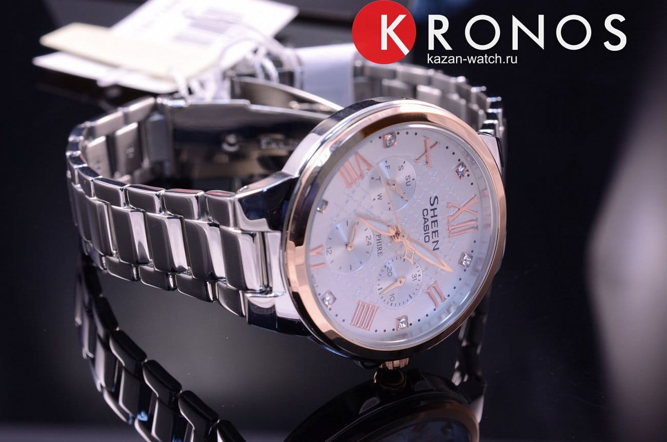 Напоминаем, что коллекция Casio Sheen - это линейка ультра-стильных женских фешн-часов в стальном корпусе, способных украсить собой самое изысканное и утонченное женское запястье. Особенностью коллекции, сделавшей ее популярной во всем мире, является использование знаменитых кристаллов Swarovski® в отделке циферблата каждой модели Sheen.