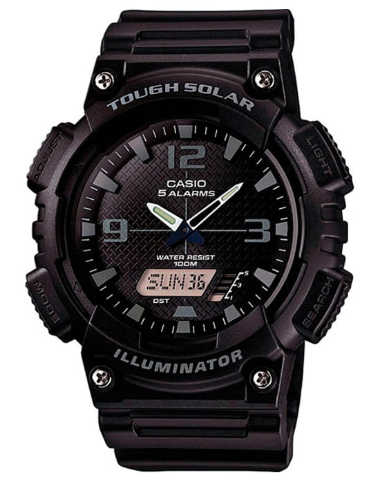 Японские мужские многофункциональные часы AQ-S810W-1A2 в спортивном стиле из коллекции Illuminator. Функции: автоматическая светодиодная подсветка, технология ToughSolarTough SolarТехнология основана на подзарядке аккумулятора от источника солнечного света, специальная панель улавливает солнечные лучи и преобразует их в энергию для работы часов. Достаточно пары минут нахождения на солнце для функционирования часов в течении суток., функция мирового времениМировое время Полезное часовое усложнение, отображающее время в основных городах и известных областях по всему миру, оно связано с часовыми поясами, удобно для путешественников и бизнесменов. , секундомерСекундомерСекундоме́р — прибор, способный измерять интервалы времени с точностью до долей секунды., cплит-хронографСплит-хронографИспользуется для измерения продолжительности нескольких временных отрезков, начинающихся одновременно, а заканчивающихся в разное время., таймерТаймерОтсчитывает секунды в обратном направлении в заданном интервале времени., 5 будильниковБудильникБуди́льник — часы, в заданный момент времени подающие звуковой, световой и/или в редких случаях другой сигнал., UTCUTCВсемирное кординационное время, не имеющее привязки к географическому положению Гринвича, основывается на атомном отсчёте времени. Регулировка времени осуществляется более точно, чем устаревшее GMT.