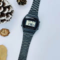 Кварцевые наручные часы со светлым циферблатом отражают стиль ретро, вызывая ностальгические воспоминания. Так выглядели первые модели от Casio, дизайнеры решили использовать их как прототип и оснастили часы 8-угольным корпусом из полимерного пластика. Браслет из нержавеющей стали 316L надёжно фиксируется на запястье. Органическое стекло легко полируется. светодиодная подсветкаСветодиодная подсветкаСветодиодная или LED-подсветка обеспечивает появление яркого холодного свечения за счёт LED-элементов - маленьких лампочек. Они потребляют минимальное количество энергии, чаще всего можно встретить 1 светодиод, в нижней части циферблата. дисплея. Срок службы батарейки – 3 года. Будильник, таймер, секундомер. Габариты: 35 x 38,9 x 9,4 мм.