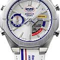 Японские мужские наручные часы Casio Edifice ECB-S10NIS-7A — это высокотехнологичный аксессуар для тех, кто ценит точность, стиль и современные инновации. Модель создана совместно с компанией Nismo, которая занимается автотюнингом и представляет интересы компании Nissan в автоспорте. Модель из коллекции Edifice, оснащённая технологией Bluetooth®, объединяет в себе классический дизайн и цифровые функции, делая каждое использование по-настоящему удобным. Корпус диаметром 43 мм выполнен из прочной нержавеющей стали , что придаёт модели благородства и долговечности. Циферблат серебристого цвета изготовлен по технологии Sunray (солнечные лучи), обеспечивая глубину и игру света. Защиту механизму обеспечивает сапфировое стеклоСапфировое стеклоПрочный и надёжный материал из кристалла сапфира синтетического происхождения, характеризующийся особой твёрдостью и устойчивостью к царапинам и повреждениям., устойчивое к царапинам и с антибликовым покрытием для лучшей читаемости. Часы работают на кварцевом механизме с поддержкой BluetoothBluetoothСовременная технология, позволяющая синхронизировать часы с телефоном и переносить данные. Часы с Bluetooth расширяют возможности вашего смартфона и делают его использование ещё более удобным.. Это даёт возможность автоматически корректировать время, устанавливать будильники, отслеживать дни недели на 6 языках , включая русский. Модель предлагает широкий набор функций: — Секундомер с точностью 1/100 секунды и временем измерения до 24 часов ; — SPLIT-хронографСплит-хронографИспользуется для измерения продолжительности нескольких временных отрезков, начинающихся одновременно, а заканчивающихся в разное время.; — ТаймерТаймерОтсчитывает секунды в обратном направлении в заданном интервале времени. обратного отсчёта от 1 секунды до 24 часов ; — 5 независимых будильников и ежечасный сигнал ; — отображение времени в формате 12/24 часа ; — автоматический календарь с возможностью отображения дня недели до 2099 года. Для комфортного использования в темное время стрелки покрыты люминесцентным составом. Часы также имеют светодиодную подсветкуСветодиодная подсветкаСветодиодная или LED-подсветка обеспечивает появление яркого холодного свечения за счёт LED-элементов - маленьких лампочек. Они потребляют минимальное количество энергии, чаще всего можно встретить 1 светодиод, в нижней части циферблата. циферблата, что делает их особенно удобными в условиях слабого освещения. Часы обладают водозащитой WR100 , подходят для повседневного ношения и плавания без акваланга. Толщина корпуса составляет всего 9.6 мм, благодаря чему часы легко помещаются под манжетом рубашки и не вызывают дискомфорта при носке. Завершает образ кожаный ремень со стандартной застежкой, обеспечивающий надежную фиксацию и комфортную посадку на запястье. Батарейка рассчитана на 2 года автономной работы , а вес модели составляет 69 грамм . Эта модель — идеальный выбор для тех, кто ценит современные технологии , классический стиль и точность японского качества . Casio Edifice — не просто хронограф, а полноценный спутник в деловой и повседневной жизни.