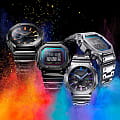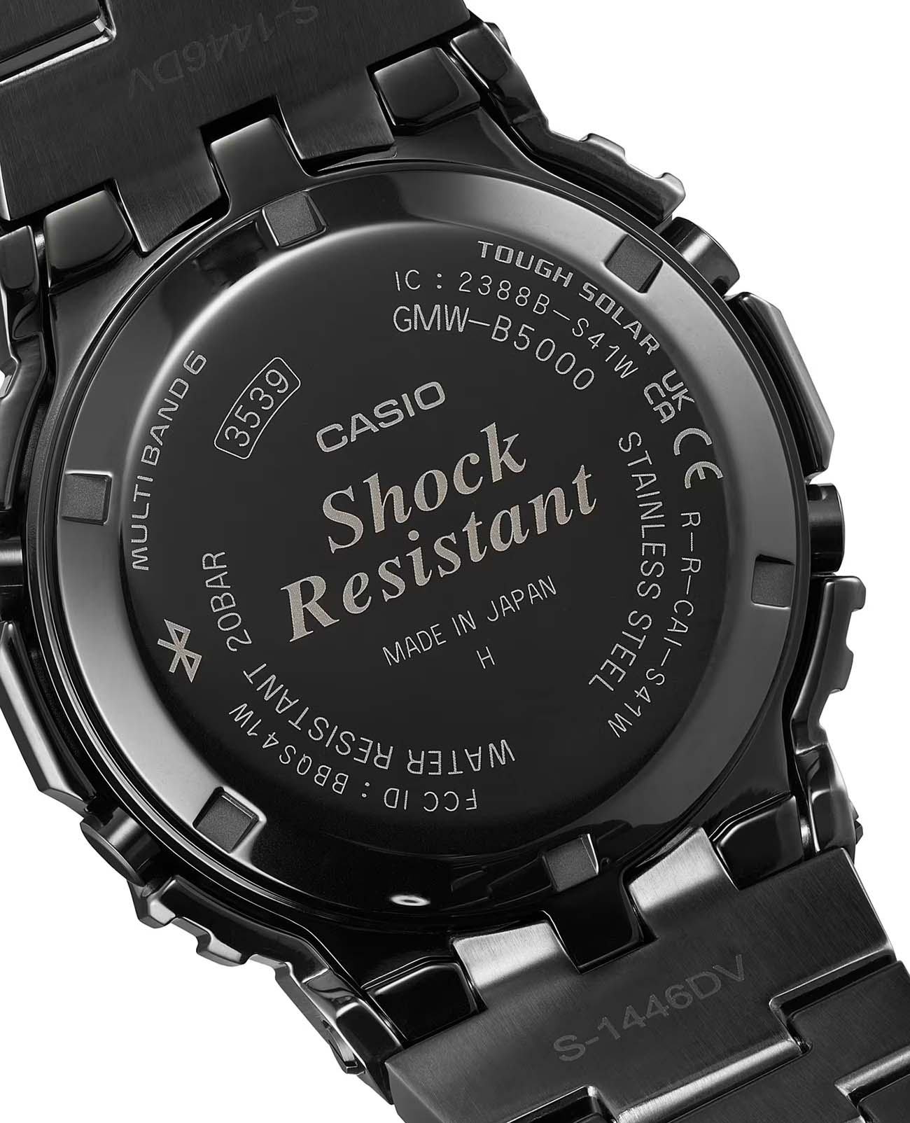 Японские мужские часы Casio G-Shock GMW-B5000BPC-1. Минеральное стеклоМинеральное стеклоМинеральное стекло представляет собой искусственно выращенный минерал кварца. Такое стекло отличается особой устойчивостью к повреждениям и царапинам. Уступает по некоторым качествам сапфировому стеклу. устойчивое к появлению царапин, обладающее высокой прозрачностью. Ударопрочный корпусУдаропрочный корпусМеханизм заключён в корпус, выполненный из современных материалов, устойчивых к ударам, механическим повреждениям и падению с высоты: инновационный пластик, карбон, нержавеющая сталь, титан. и ремешок выполнены из нержавеющей стали с IP-покрытиемIP-покрытиеМетод ионного напыления. Демонстрирует повышенную устойчивость к истиранию, окислению и химическим веществам. Под воздействием высокого давления и температуры около 1500°C молекулы металла надёжно соединяются с частицами корпуса часов., обеспечивающий максимально высокий уровень защиты часов от механических повреждений. Tough SolarTough SolarТехнология основана на подзарядке аккумулятора от источника солнечного света, специальная панель улавливает солнечные лучи и преобразует их в энергию для работы часов. Достаточно пары минут нахождения на солнце для функционирования часов в течении суток.. Часы оснащены технологией BluetoothBluetoothСовременная технология, позволяющая синхронизировать часы с телефоном и переносить данные. Часы с Bluetooth расширяют возможности вашего смартфона и делают его использование ещё более удобным., которая предлагает энергосберегающую возможность передачи данных нажатием кнопки. С помощью Bluetooth вы можете подключить часы к смартфону, не используя провод, и получить доступ к целому ряду полезных функций. Если часы подключены к смартфону, время устанавливается автоматически. Мировое времяМировое время Полезное часовое усложнение, отображающее время в основных городах и известных областях по всему миру, оно связано с часовыми поясами, удобно для путешественников и бизнесменов. в 29 различных часовых поясах. БудильникБудильникБуди́льник — часы, в заданный момент времени подающие звуковой, световой и/или в редких случаях другой сигнал., секундомерСекундомерСекундоме́р — прибор, способный измерять интервалы времени с точностью до долей секунды., таймерТаймерОтсчитывает секунды в обратном направлении в заданном интервале времени. и функция поиска телефона. После нажатия на кнопку, ваш потерянный телефон издаст звуковой сигнал. Класс водозащиты: 200 метров, позволит плавать, нырять и заниматься другими водными видами спорта. Стальной браслет с IP-покрытиемIP-покрытиеМетод ионного напыления. Демонстрирует повышенную устойчивость к истиранию, окислению и химическим веществам. Под воздействием высокого давления и температуры около 1500°C молекулы металла надёжно соединяются с частицами корпуса часов. на раскладной застёжкеРаскладная застёжкаТакой тип застёжки используется только на браслетах из металла. Она никогда не раскрывается полностью, происходит разделение на 2 и более частей. Раскладывающая застёжка снизит вероятность потери часов к минимуму..