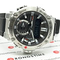 Наручные часы в чёрно-серебристой расцветке помогут всегда находиться в центре внимания, они станут выигрышной деталью любого образа. Разработчики Casio выбрали для этой модели обновлённый противоударный корпусУдаропрочный корпусМеханизм заключён в корпус, выполненный из современных материалов, устойчивых к ударам, механическим повреждениям и падению с высоты: инновационный пластик, карбон, нержавеющая сталь, титан., реализовав технологию Carbon Core GuardCarbon Core Guard Новейшая структура корпуса, разработанная Casio. Полиуретановая пластина дополнительно усилена карбоновыми вставками, что придаёт специальную защиту от механических повреждений. Карбон отличается лёгкостью и прочностью.. Часы на солнечной батарее станут идеальным спутником в любой ситуации. Двойная подсветка - люминесцентнаяЛюминесцентное покрытиеПозволяет считывать показания времени в темноте. Производители наносят на стрелки, часовые индексы, безель или поверхность циферблата светонакопительный состав, дающий холодное свечение. и светодиодная Светодиодная подсветкаСветодиодная или LED-подсветка обеспечивает появление яркого холодного свечения за счёт LED-элементов - маленьких лампочек. Они потребляют минимальное количество энергии, чаще всего можно встретить 1 светодиод, в нижней части циферблата.. Ремешок из полимерного материала. БезельБезельВнешний ободок, закрепляющий стекло. В спортивных часах так называется поворотное кольцо с делениями на циферблате, выполняет роль таймера – замеряет отрезки времени на шкале. Неподвижный безель – элемент декора. Однонаправленно вращающийся безель на дайверских часах позволяет фиксировать моменты погружения и выныривания на поверхность. из нержавеющей стали 316L. Минеральное стекло. Индикатор состояния заряда батарейки. Функции: BluetoothBluetoothСовременная технология, позволяющая синхронизировать часы с телефоном и переносить данные. Часы с Bluetooth расширяют возможности вашего смартфона и делают его использование ещё более удобным., будильник, секундомер, таймер, мировое времяМировое время Полезное часовое усложнение, отображающее время в основных городах и известных областях по всему миру, оно связано с часовыми поясами, удобно для путешественников и бизнесменов. , автоматический календарь. Габариты: 53,9 x 49,2 x 14,5 мм.