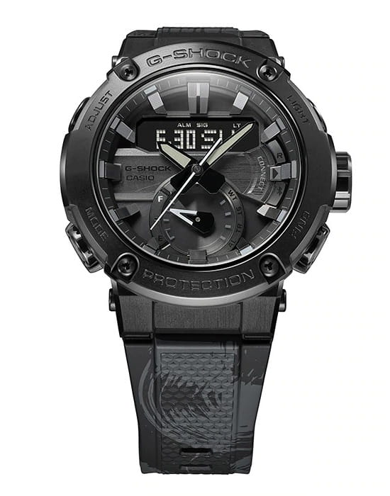 Компания Casio представляет совместую работу с китайским художников Chen YingJie (Чэнь Инцзе), который в своем творчестве использует традиционные восточные чернила и западное уличное искусство.Две базовые модели MT-G и G-STEEL были специально отобраны самим Ченом Инцзе на основе их мощных металлических конструкций. Тема дизайна для этой модели - китайская философия Тайцзи. Философия тайцзи - концепция того, что все естественные вещи и законы в мире меняются с течением времени. Это выражается в технологии черного ионного напыления и оригинальной печати, применяемой в дизайне этих моделей. Задняя крышка модели G-STEEL выгравирована с подписью Чэнь Инцзе. Эти модели поставляются уникальной упаковке в ограниченном количестве. Функции GST:Ударопрочность, Bluetooth, Солнечный аккумулятор, Необрит, Функция мирового времени, Секундомер, Таймер, 5 ежедневных будильников, Функция поиска телефона,Автоматический календарь, Минеральное стекло, Водонепроницаемость до 200м.