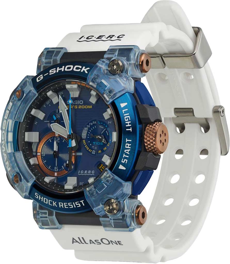 Новика часов Frogman создана не только для профессиональных дайверов, но и для простых любителей морских глубин. G-Shock Frogman. Модель создана в честь 30-летия ICERC Japan (Международного центра исследований образования китообразных). На задней крышке выгравирован девиз «Love The Sea And The Earth» (Любите Море и Землю.) Питание от солнечной энергии Tough Solar - солнечные батарейки большой мощности, индикатор заряда батареи. Функция автоматического сохранения энергии. Время работы аккумулятора без подзарядки до 5 месяцев, при включенной функции сохранения энергии до 30 месяцев. Противоударный корпус защищает механизм от ударов и вибрации. Ударопрочная конструкция Carbon Core Guard объединяет корпус и заднюю крышку в единый карбоновый моноблок. Защищены от магнитных полей. Циферблат подсвечивается ярким светодиодом. Послесвечение. Цвет подсветки: белый. Необритовое светонакопительное покрытие обеспечивает длительное послесвечение в темноте даже после кратковременного нахождения на свету.
