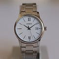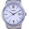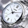 Японские мужские наручные часы с минеральным стекломМинеральное стеклоМинеральное стекло представляет собой искусственно выращенный минерал кварца. Такое стекло отличается особой устойчивостью к повреждениям и царапинам. Уступает по некоторым качествам сапфировому стеклу. Casio Collection MTP-V002D-7B3, кварцевый механизм с высокой точностью. Класс водозащиты: 30 метров, позволит защитить корпус от случайных брызг или капель дождя. Корпус часов изготовлен из стали. Стальной браслет на раскладной застёжкеРаскладная застёжкаТакой тип застёжки используется только на браслетах из металла. Она никогда не раскрывается полностью, происходит разделение на 2 и более частей. Раскладывающая застёжка снизит вероятность потери часов к минимуму.. Метки в виде штрихов и двух римских цифр.