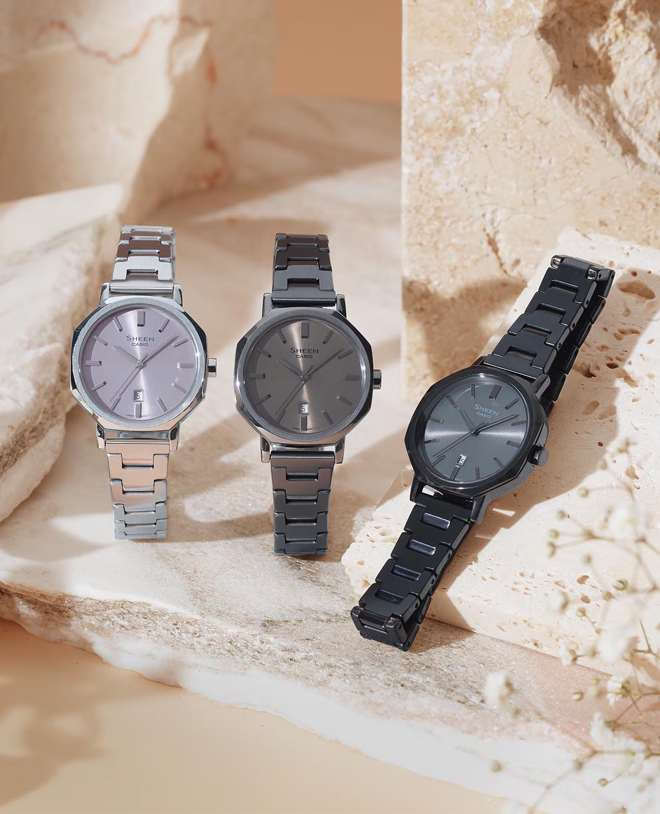 Женские японские часы Casio Sheen SHE-4554GY-5A, кварцевый механизм с высокой точностью. Сапфировое стеклоСапфировое стеклоПрочный и надёжный материал из кристалла сапфира синтетического происхождения, характеризующийся особой твёрдостью и устойчивостью к царапинам и повреждениям., защищающее от царапин. Круглый стальной корпус изготовлен из нержавеющей стали c IP покрытиемIP-покрытиеМетод ионного напыления. Демонстрирует повышенную устойчивость к истиранию, окислению и химическим веществам. Под воздействием высокого давления и температуры около 1500°C молекулы металла надёжно соединяются с частицами корпуса часов.. Апертура даты расположена на отметке 6 часов. Стальной браслет c IP покрытиемIP-покрытиеМетод ионного напыления. Демонстрирует повышенную устойчивость к истиранию, окислению и химическим веществам. Под воздействием высокого давления и температуры около 1500°C молекулы металла надёжно соединяются с частицами корпуса часов. имеет раскладную застежкуРаскладная застёжкаТакой тип застёжки используется только на браслетах из металла. Она никогда не раскрывается полностью, происходит разделение на 2 и более частей. Раскладывающая застёжка снизит вероятность потери часов к минимуму.. Класс водозащиты: 50 метров, позволит защитить корпус от случайных брызг или капель дождя.