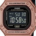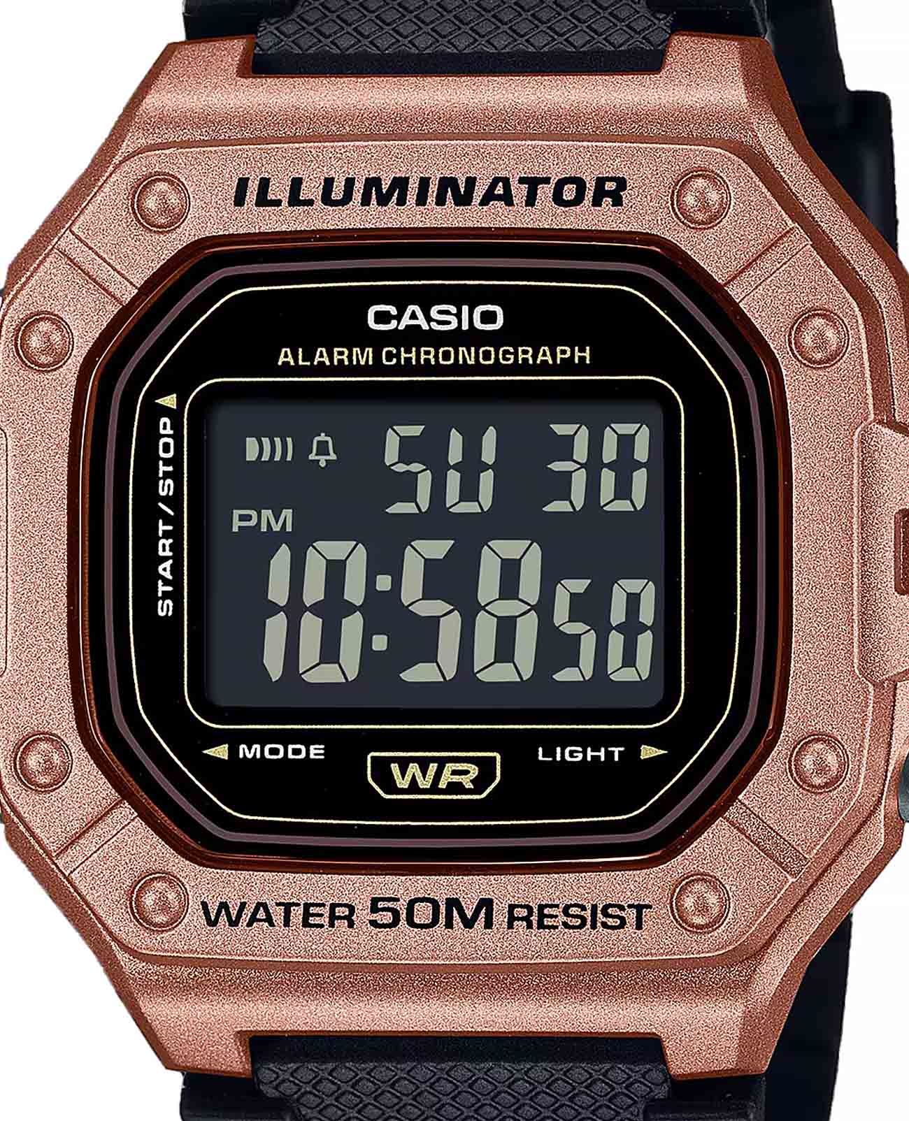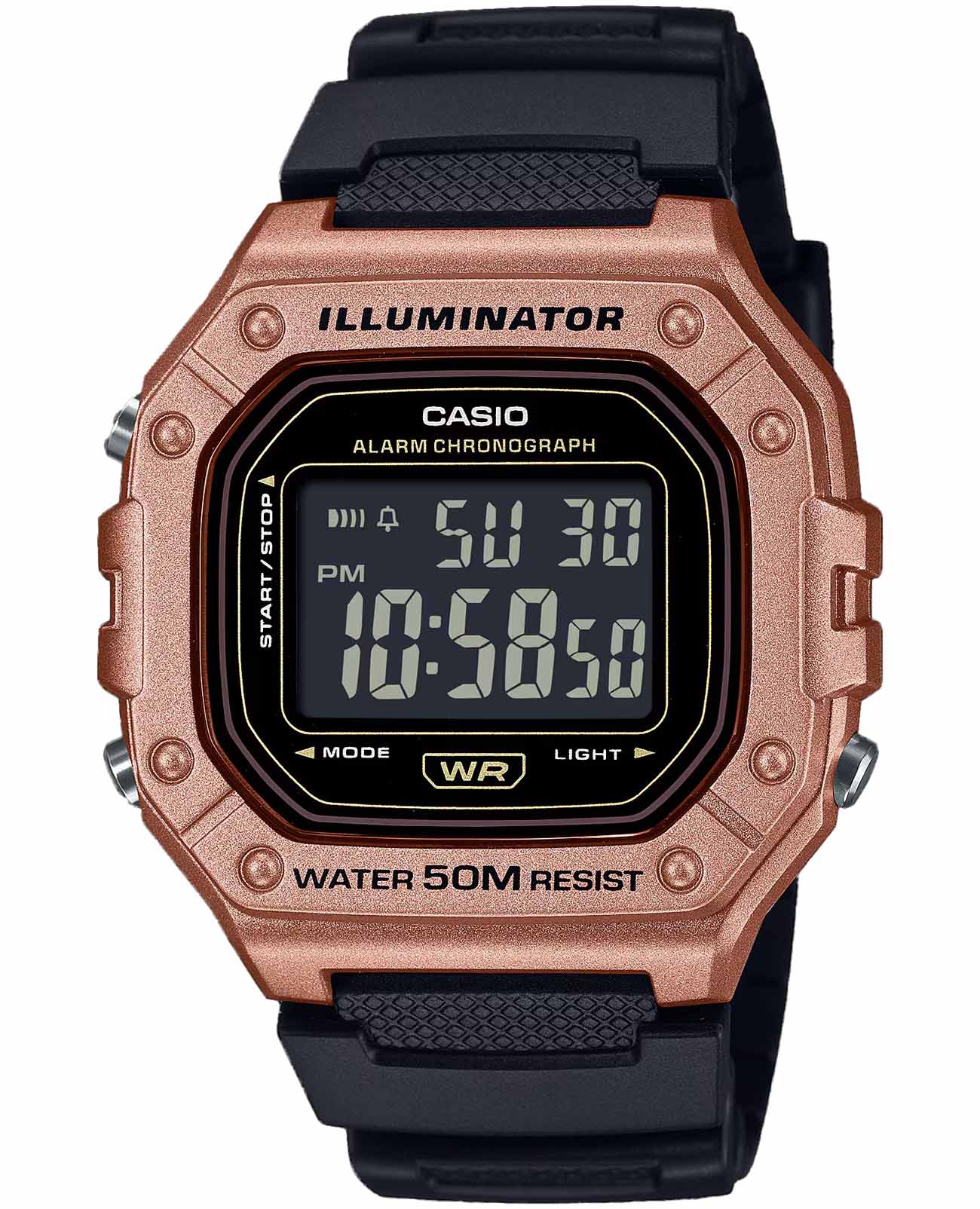 Спортивные японские мужские часы-хронографХронографФункция позволяет измерять отрезки времени с особой точностью: часы, минуты, секунды. Верным признаком хронографа является наличие на циферблате 3 дополнительных окошек-счётчиков. Casio Collection W-218HM-5BV, кварцевый механизм с высокой точностью, органическое стекло. Корпус часов изготовлен из пластика. Светодиодная подсветкаСветодиодная подсветкаСветодиодная или LED-подсветка обеспечивает появление яркого холодного свечения за счёт LED-элементов - маленьких лампочек. Они потребляют минимальное количество энергии, чаще всего можно встретить 1 светодиод, в нижней части циферблата. освещает весь циферблат. Цвет подсветки: желтый. 12-ти и 24-х часовой формат времени. СекундомерСекундомерСекундоме́р — прибор, способный измерять интервалы времени с точностью до долей секунды. с точностью показаний 1/100с и временем измерения 1ч. Сплит-хронографСплит-хронографИспользуется для измерения продолжительности нескольких временных отрезков, начинающихся одновременно, а заканчивающихся в разное время.. Батарейка рассчитана на 7 лет. БудильникБудильникБуди́льник — часы, в заданный момент времени подающие звуковой, световой и/или в редких случаях другой сигнал., ежечасный сигнал. Класс водозащиты: 50 метров, позволит защитить корпус от случайных брызг или капель дождя. Ремешок из полимерного материала на стандартной застежке.