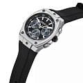 Cerruti 1881 CIWGO0085001 — эффектные мужские часы, сочетающие индустриальную мощь и современную элегантность. Корпус из нержавеющей стали с массивным восьмигранным безелемБезельВнешний ободок, закрепляющий стекло. В спортивных часах так называется поворотное кольцо с делениями на циферблате, выполняет роль таймера – замеряет отрезки времени на шкале. Неподвижный безель – элемент декора. Однонаправленно вращающийся безель на дайверских часах позволяет фиксировать моменты погружения и выныривания на поверхность. и декоративными винтами подчёркивает силу и характер дизайна. Глубокий чёрный циферблат с тремя счётчиками хронографаХронографФункция позволяет измерять отрезки времени с особой точностью: часы, минуты, секунды. Верным признаком хронографа является наличие на циферблате 3 дополнительных окошек-счётчиков. и рельефной текстурой придаёт модели динамичность, а контрастные стрелки и метки с люминесцентным покрытиемЛюминесцентное покрытиеПозволяет считывать показания времени в темноте. Производители наносят на стрелки, часовые индексы, безель или поверхность циферблата светонакопительный состав, дающий холодное свечение. обеспечивают превосходную читаемость при любом освещении. Прочное минеральное стеклоМинеральное стеклоМинеральное стекло представляет собой искусственно выращенный минерал кварца. Такое стекло отличается особой устойчивостью к повреждениям и царапинам. Уступает по некоторым качествам сапфировому стеклу. защищает циферблат от царапин, а мягкий каучуковый ремешок обеспечивает комфорт при ежедневном ношении. Cerruti 1881 — это воплощение итальянского стиля, надёжности и уверенности, идеально подходящее для мужчин, ценящих современные формы и функциональную эстетику.