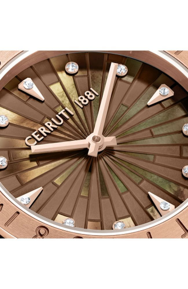 Cerruti 1881 CIWLG0073803 — элегантные женские часы, сочетающие классический стиль и сияние итальянской роскоши. Корпус из нержавеющей стали и браслет с частичным благородным золотым IP-покрытиемIP-покрытиеМетод ионного напыления. Демонстрирует повышенную устойчивость к истиранию, окислению и химическим веществам. Под воздействием высокого давления и температуры около 1500°C молекулы металла надёжно соединяются с частицами корпуса часов., подчёркивающим изысканность модели. БезельБезельВнешний ободок, закрепляющий стекло. В спортивных часах так называется поворотное кольцо с делениями на циферблате, выполняет роль таймера – замеряет отрезки времени на шкале. Неподвижный безель – элемент декора. Однонаправленно вращающийся безель на дайверских часах позволяет фиксировать моменты погружения и выныривания на поверхность. IP-покрытиемIP-покрытиеМетод ионного напыления. Демонстрирует повышенную устойчивость к истиранию, окислению и химическим веществам. Под воздействием высокого давления и температуры около 1500°C молекулы металла надёжно соединяются с частицами корпуса часов. и гравировкой логотипа Cerruti 1881 придаёт образу фирменную индивидуальность, а коричневый циферблат с лучевой текстурой и кристаллическими метками создаёт игру света и глубины. Прочное минеральное стеклоМинеральное стеклоМинеральное стекло представляет собой искусственно выращенный минерал кварца. Такое стекло отличается особой устойчивостью к повреждениям и царапинам. Уступает по некоторым качествам сапфировому стеклу. защищает поверхность от царапин, а металлический браслет с плавным переходом звеньев оснащён застёжкой «бабочка»Застёжка "бабочка"Такой вид застёжки дополняется предохранителями, помогающими избежать случайного раскрытия браслета. Обладают изящным исполнением. , обеспечивающей надёжность и комфорт при ношении. Cerruti 1881 — воплощение женственности и утончённого вкуса, идеально подходящее для повседневной элегантности и особых случаев.