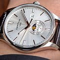 Стильная модель в классическом исполнении оснащена необычным часовым усложнением, окошко в нижней части серебристого циферблата отображает лунные фазы. Аксессуар безупречен не только с точки зрения дизайна, он демонстрирует выдающуюся точность хода швейцарского кварцевого механизма ETA F05.841. Такая особенность отмечена официальным сертификатом хронометра COSCСертификат COSCОфициальный сертификат, подтверждающий то, что часы ходят с особо высокой точностью. Для получения документа часы подвергаются тестовым испытаниям, разработанным швейцарским институтом тестирования хронометров COSC. Допустимая норма для механических часов -4/+6 секунд в день, для кварцевых моделей +/- 0,07 секунд в день.. Сапфировое стекло с односторонним антибликовым покрытием. Соблюдение концепции DS ConceptDS ConceptDouble Security Concept, обозначает двойную надёжность и безупречную точность часов Certina. Двойная система защиты подразумевает обеспечение максимальной устойчивости к ударам и высоких показателей водонепроницаемости.. Водостойкость 100 метров. Люминесцентная подсветкаЛюминесцентное покрытиеПозволяет считывать показания времени в темноте. Производители наносят на стрелки, часовые индексы, безель или поверхность циферблата светонакопительный состав, дающий холодное свечение.. Корпус из стали 316L с противокоррозионными свойствами. Ремешок из натуральной кожи. . Функция EOLEOLПредставляет собой систему, уведомляющую владельца часов о необходимости замены элемента питания. За 2 недели до полного разряда батарейки секундная стрелка перестаёт ходить чётко и начинает перепрыгивать на 3-4 деления., отображение текущего числа. Диаметр корпуса: 41 мм.