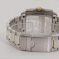 Кварцевый механизм с высокой точностью. Сапфировое стеклоСапфировое стеклоПрочный и надёжный материал из кристалла сапфира синтетического происхождения, характеризующийся особой твёрдостью и устойчивостью к царапинам и повреждениям. устойчивое к появлению царапин, обладающее высокой прозрачностью. Стрелки с люминесцентным покрытиемЛюминесцентное покрытиеПозволяет считывать показания времени в темноте. Производители наносят на стрелки, часовые индексы, безель или поверхность циферблата светонакопительный состав, дающий холодное свечение.. Класс водозащиты: 50 метров, позволит защитить корпус от случайных брызг или капель дождя. Корпус часов изготовлен из нержавеющей стали. Браслет с частичным PVD-покрытиемPVDУльтратонкое покрытие наносится в технике вакуумного напыления, сочетает в себе нитрид титана особой прочности со слоем золота или оксида хрома. Несёт в себе декоративную или защитную функцию. и с застёжкой «бабочка» с кнопкамиЗастёжка "бабочка"Такой вид застёжки дополняется предохранителями, помогающими избежать случайного раскрытия браслета. Обладают изящным исполнением. .