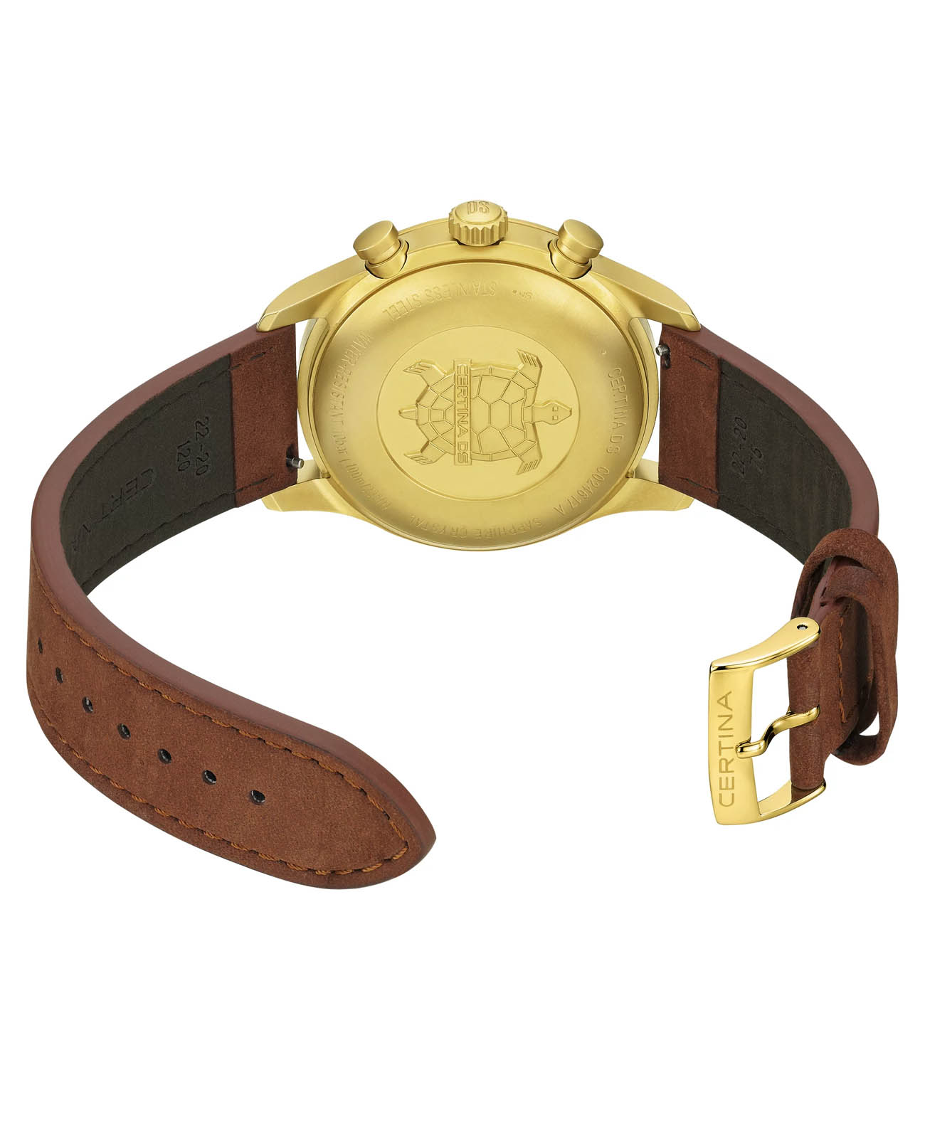 Мужские швейцарские часы Certina DS Pilot C0246173609200, кварцевый механизм с высокой точностью. Сапфировое стеклоСапфировое стеклоПрочный и надёжный материал из кристалла сапфира синтетического происхождения, характеризующийся особой твёрдостью и устойчивостью к царапинам и повреждениям. устойчивое к появлению царапин, обладающее высокой прозрачностью. Корпус изготовлен из нержавеющей стали с PVD-покрытиемPVDУльтратонкое покрытие наносится в технике вакуумного напыления, сочетает в себе нитрид титана особой прочности со слоем золота или оксида хрома. Несёт в себе декоративную или защитную функцию.. Стрелки с люминесцентным покрытиемЛюминесцентное покрытиеПозволяет считывать показания времени в темноте. Производители наносят на стрелки, часовые индексы, безель или поверхность циферблата светонакопительный состав, дающий холодное свечение.. Окошко даты находится в положении 6 часов. Класс водозащиты: 100 метров, позволит плавать, нырять и заниматься другими водными видами спорта. Кожаный браслет на стандартной застежке.