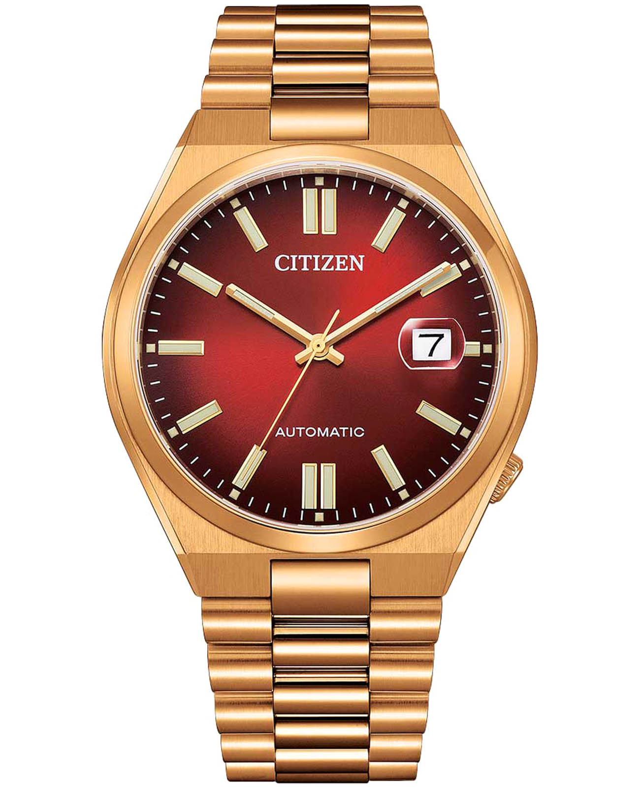 Мужские часы Citizen Tsuyosa NJ0153-82X - идеальное сочетание классического и современного дизайна. Корпус из нержавеющей стали с IP-покрытиемIP-покрытиеМетод ионного напыления. Демонстрирует повышенную устойчивость к истиранию, окислению и химическим веществам. Под воздействием высокого давления и температуры около 1500°C молекулы металла надёжно соединяются с частицами корпуса часов. цвета розового золота, диаметром 40 мм идеально сбалансирован. Сапфировое стеклоСапфировое стеклоПрочный и надёжный материал из кристалла сапфира синтетического происхождения, характеризующийся особой твёрдостью и устойчивостью к царапинам и повреждениям. с антибликовым покрытиемАнтибликовое покрытиеСлой оксида металла в 0,13-0,3 микрон, благодаря которому стекло часов не бликует и не отражает свет. Антибликовое покрытие уменьшает отражение света в 10 раз, обеспечивая отличную читаемость показателей циферблата. обеспечивает отличную защиту циферблата от царапин. Механические часы с автоподзаводом. Стальной браслет на раскладной застёжкеРаскладная застёжкаТакой тип застёжки используется только на браслетах из металла. Она никогда не раскрывается полностью, происходит разделение на 2 и более частей. Раскладывающая застёжка снизит вероятность потери часов к минимуму. идеально дополняют дизайн часов, обеспечивая комфортное ношение. Метки в виде штрихов. Окошко даты с увеличительным стеклом находится в положении 3 часа. Стрелки и метки с люминесцентным покрытиемЛюминесцентное покрытиеПозволяет считывать показания времени в темноте. Производители наносят на стрелки, часовые индексы, безель или поверхность циферблата светонакопительный состав, дающий холодное свечение.. В механизме 21 камень, частота 21600 полуколебаний в час. Запас хода 42 часа. Рифленая заводная головка находится в положении 4 часа. Завинчивающаяся прозрачная задняя крышка. Часы обладают водонепроницаемостью до 50WR, что делает их идеальными для повседневной носки.