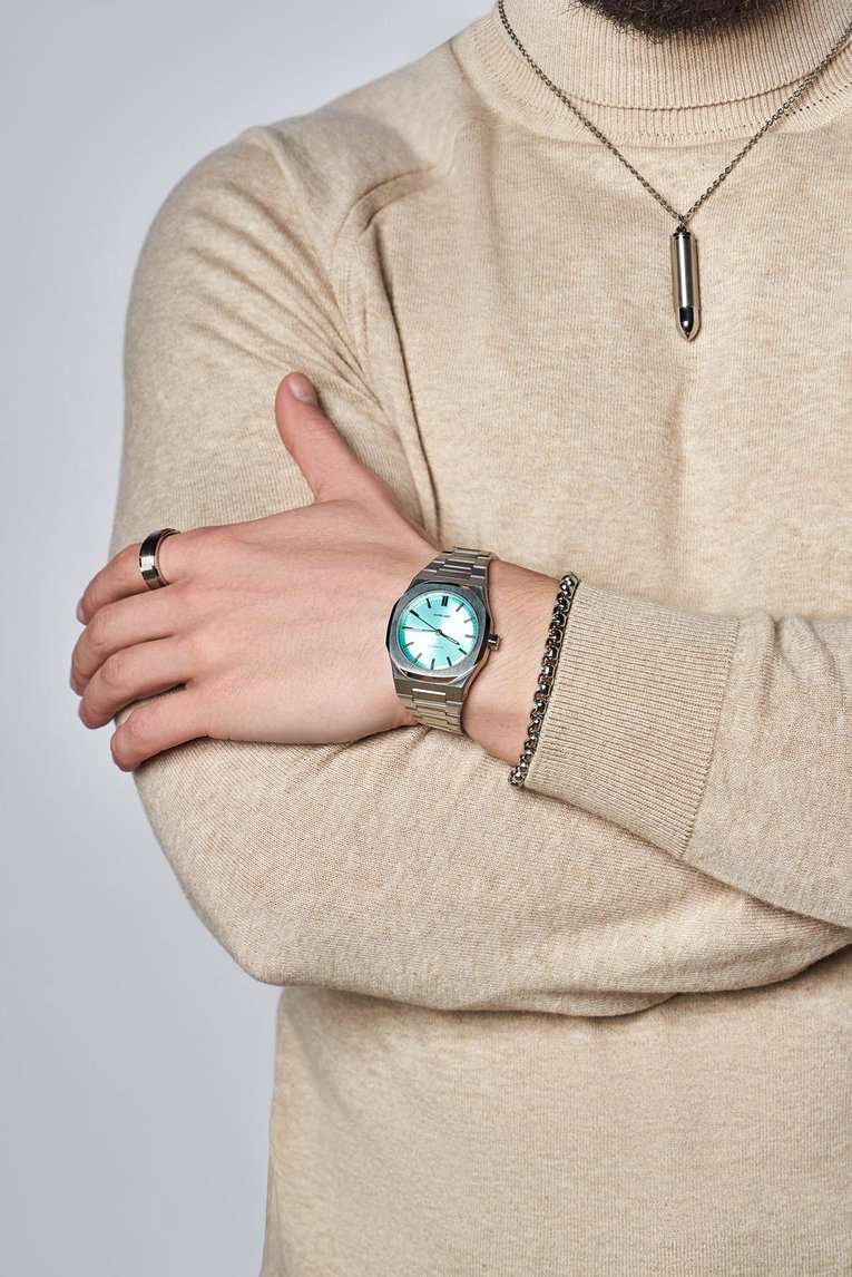 Часы D1 Milano Beryl Code ATBU02 – стильный аксессуар для современных мужчин и женщин. Часы механические с автоподзаводом. Корпус выполнен из прочной нержавеющей стали 316L, а зеленый циферблат украшен простыми штрихами вместо цифр. Стрелки с люминесцентным покрытиемЛюминесцентное покрытиеПозволяет считывать показания времени в темноте. Производители наносят на стрелки, часовые индексы, безель или поверхность циферблата светонакопительный состав, дающий холодное свечение.. Задняя крышка закреплена на 8 винтах, что обеспечивает надежность конструкции. Стальной браслет на скрытой раскладной застёжкеРаскладная застёжкаТакой тип застёжки используется только на браслетах из металла. Она никогда не раскрывается полностью, происходит разделение на 2 и более частей. Раскладывающая застёжка снизит вероятность потери часов к минимуму.. Часы имеют водозащиту 100 метров (100WR), что позволит плавать, нырять и заниматься другими водными видами спорта. Часы сочетают в себе классический дизайн и современные технологии производства.