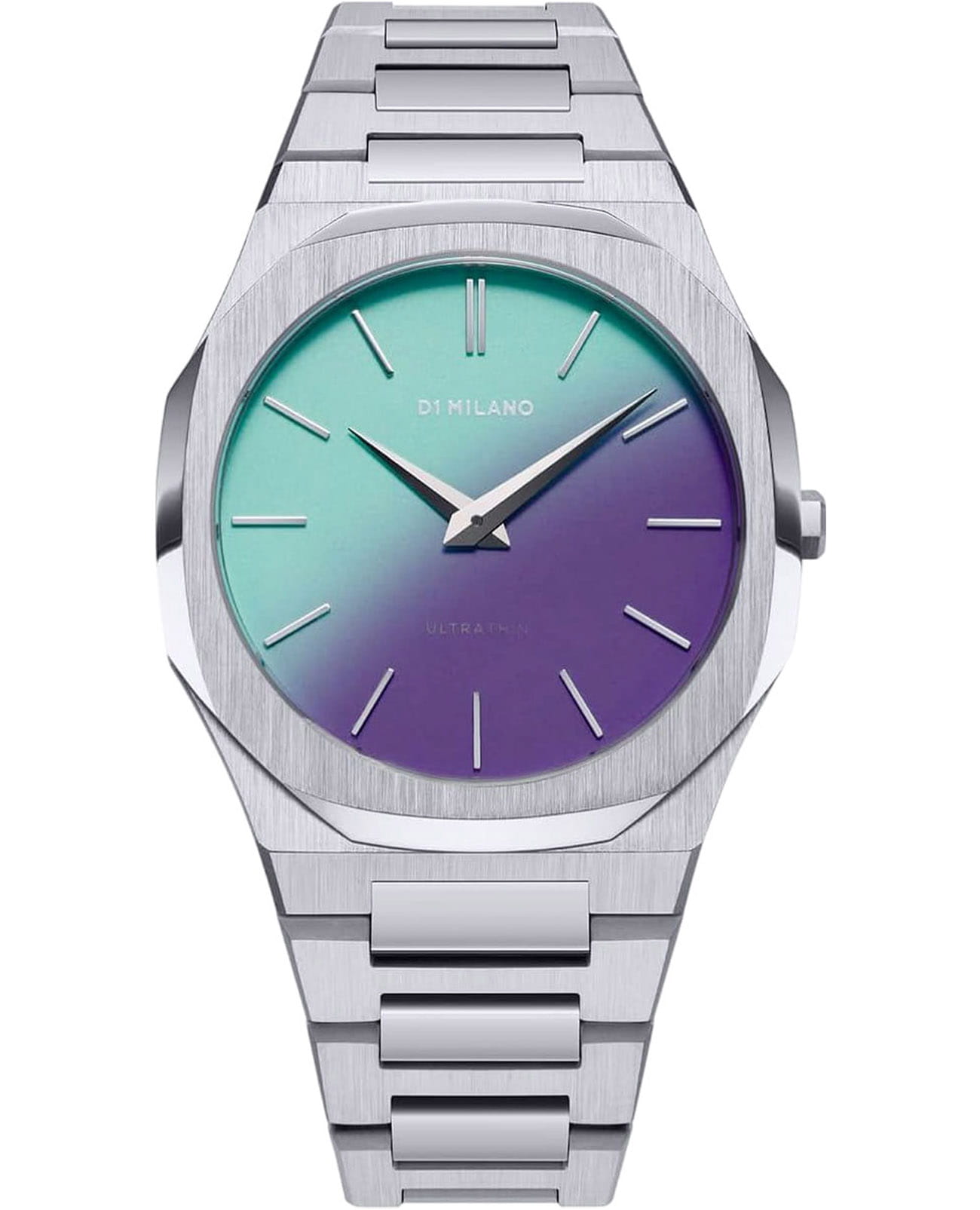 Часы D1 Milano Ultra Thin Chromo Sync UTBJ43 — это уникальные кварцевые часы, которые подчеркнут ваш изысканный стиль. Эти наручные часы из коллекции Ultra Thin с эффектным фотохромным циферблатом станут выразительным акцентом вашего образа. Корпус диаметром 40 мм из нержавеющей стали придает часам современный и утонченный вид. Циферблат с метками в виде штрихов, а стрелки создают стильный контраст, подчёркивая элегантность модели. Задняя крышка из нержавеющей стали закреплена на 8-х винтах. Стальной браслет с застежкой «бабочка»Застёжка "бабочка"Такой вид застёжки дополняется предохранителями, помогающими избежать случайного раскрытия браслета. Обладают изящным исполнением. обеспечивает надежность и комфорт в повседневном использовании. Сапфировое стеклоСапфировое стеклоПрочный и надёжный материал из кристалла сапфира синтетического происхождения, характеризующийся особой твёрдостью и устойчивостью к царапинам и повреждениям.  с антибликовым покрытиемАнтибликовое покрытиеСлой оксида металла в 0,13-0,3 микрон, благодаря которому стекло часов не бликует и не отражает свет. Антибликовое покрытие уменьшает отражение света в 10 раз, обеспечивая отличную читаемость показателей циферблата. защищает циферблат, а водозащита до 50WR делает эти часы практичным выбором для любых условий. Благодаря калибру Miyota 1L22, они отличаются точностью и надежностью. Эти итальянские часы представляют собой идеальное сочетание традиционного мастерства и инновационного подхода, воплощая в себе новый взгляд на классическую элегантность.