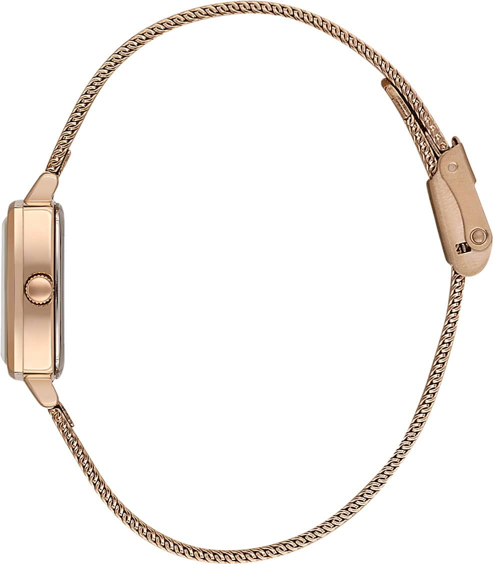 Женские кварцевые часы Daniel Klein — это классический аксессуар, придающий особый шарм. Корпус размером 23×23 мм выполнен из металла с IP-покрытиемIP-покрытиеМетод ионного напыления. Демонстрирует повышенную устойчивость к истиранию, окислению и химическим веществам. Под воздействием высокого давления и температуры около 1500°C молекулы металла надёжно соединяются с частицами корпуса часов. цвета розового золота. Циферблат серебристого цвета выполнен по технологии Sunray («солнечные лучи») и оформлен штрихами и стрелками. Циферблат защищён минеральным стекломМинеральное стеклоМинеральное стекло представляет собой искусственно выращенный минерал кварца. Такое стекло отличается особой устойчивостью к повреждениям и царапинам. Уступает по некоторым качествам сапфировому стеклу.. Часы оснащены стальным браслетом миланского плетения с IP-покрытиемIP-покрытиеМетод ионного напыления. Демонстрирует повышенную устойчивость к истиранию, окислению и химическим веществам. Под воздействием высокого давления и температуры около 1500°C молекулы металла надёжно соединяются с частицами корпуса часов. на раскладном замкеРаскладная застёжкаТакой тип застёжки используется только на браслетах из металла. Она никогда не раскрывается полностью, происходит разделение на 2 и более частей. Раскладывающая застёжка снизит вероятность потери часов к минимуму.. Водонепроницаемость 30 м позволяет использовать часы в повседневных условиях. Идеальный выбор для тех, кто ценит турецкое качество и элегантный дизайн.