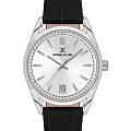 Женские кварцевые часы Daniel Klein — это элегантный аксессуар с классическими чертами. Корпус диаметром 32 мм выполнен из нержавеющей стали. Циферблат серебристого цвета выполнен по технологии Sunray («солнечные лучи») и оформлен штрихами и стрелками. Стрелки и метки с люминесцентным покрытиемЛюминесцентное покрытиеПозволяет считывать показания времени в темноте. Производители наносят на стрелки, часовые индексы, безель или поверхность циферблата светонакопительный состав, дающий холодное свечение., обеспечивающим хорошую читаемость в темноте. Окошко даты расположено в положении 6 часов. Циферблат защищён минеральным стекломМинеральное стеклоМинеральное стекло представляет собой искусственно выращенный минерал кварца. Такое стекло отличается особой устойчивостью к повреждениям и царапинам. Уступает по некоторым качествам сапфировому стеклу.. Часы оснащены кожаным ремешком на классической пряжке. Водонепроницаемость 30 м позволяет использовать часы в повседневных условиях. Идеальный выбор для тех, кто ценит турецкое качество и универсальный дизайн.