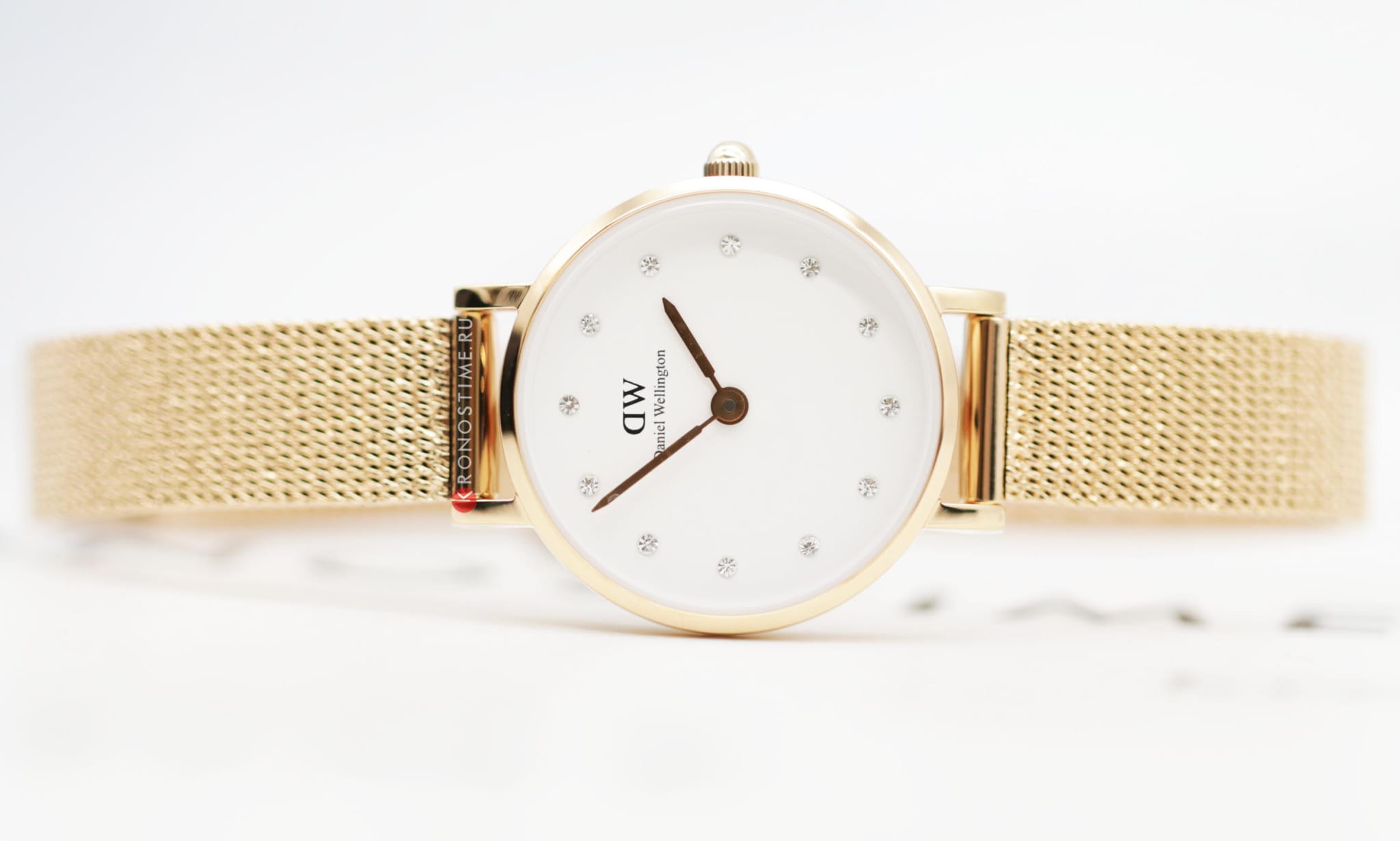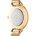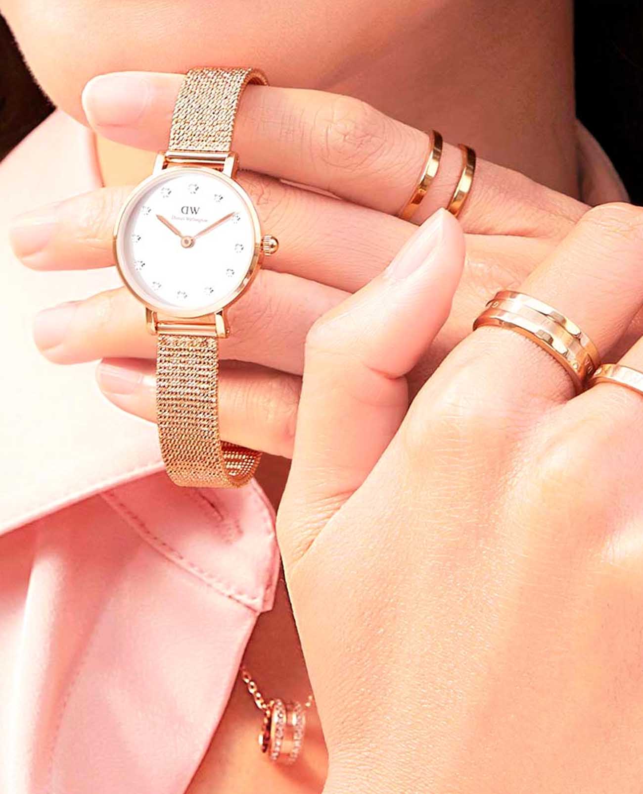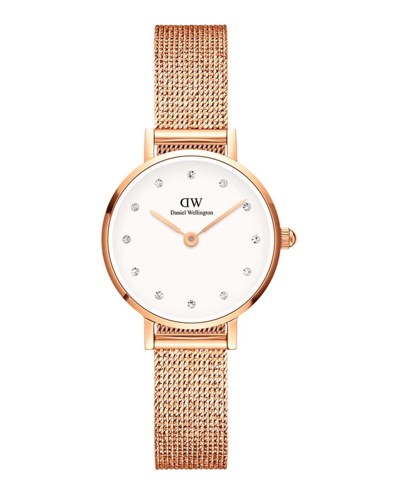 Женские наручные часы с минеральным стекломМинеральное стеклоМинеральное стекло представляет собой искусственно выращенный минерал кварца. Такое стекло отличается особой устойчивостью к повреждениям и царапинам. Уступает по некоторым качествам сапфировому стеклу. Daniel Wellington Petite DW00100529, кварцевый механизм с высокой точностью. Корпус часов изготовлен из стали с PVD-покрытиемPVDУльтратонкое покрытие наносится в технике вакуумного напыления, сочетает в себе нитрид титана особой прочности со слоем золота или оксида хрома. Несёт в себе декоративную или защитную функцию.. Циферблат украшен 12 кристаллами Swarovski. Класс водозащиты: 30 метров, позволит защитить корпус от случайных брызг или капель дождя. Стальной браслет миланского плетения с PVD-покрытиемPVDУльтратонкое покрытие наносится в технике вакуумного напыления, сочетает в себе нитрид титана особой прочности со слоем золота или оксида хрома. Несёт в себе декоративную или защитную функцию. на раскладном замкеРаскладной замокДанный вариант застежки используется только на часах с металлическим браслетом. Отличительная особенность такого крепления в том, что длина браслета становится универсальной и вы можете самостоятельно отрегулировать нужный вам размер – застежка просто двигается по браслету часов..