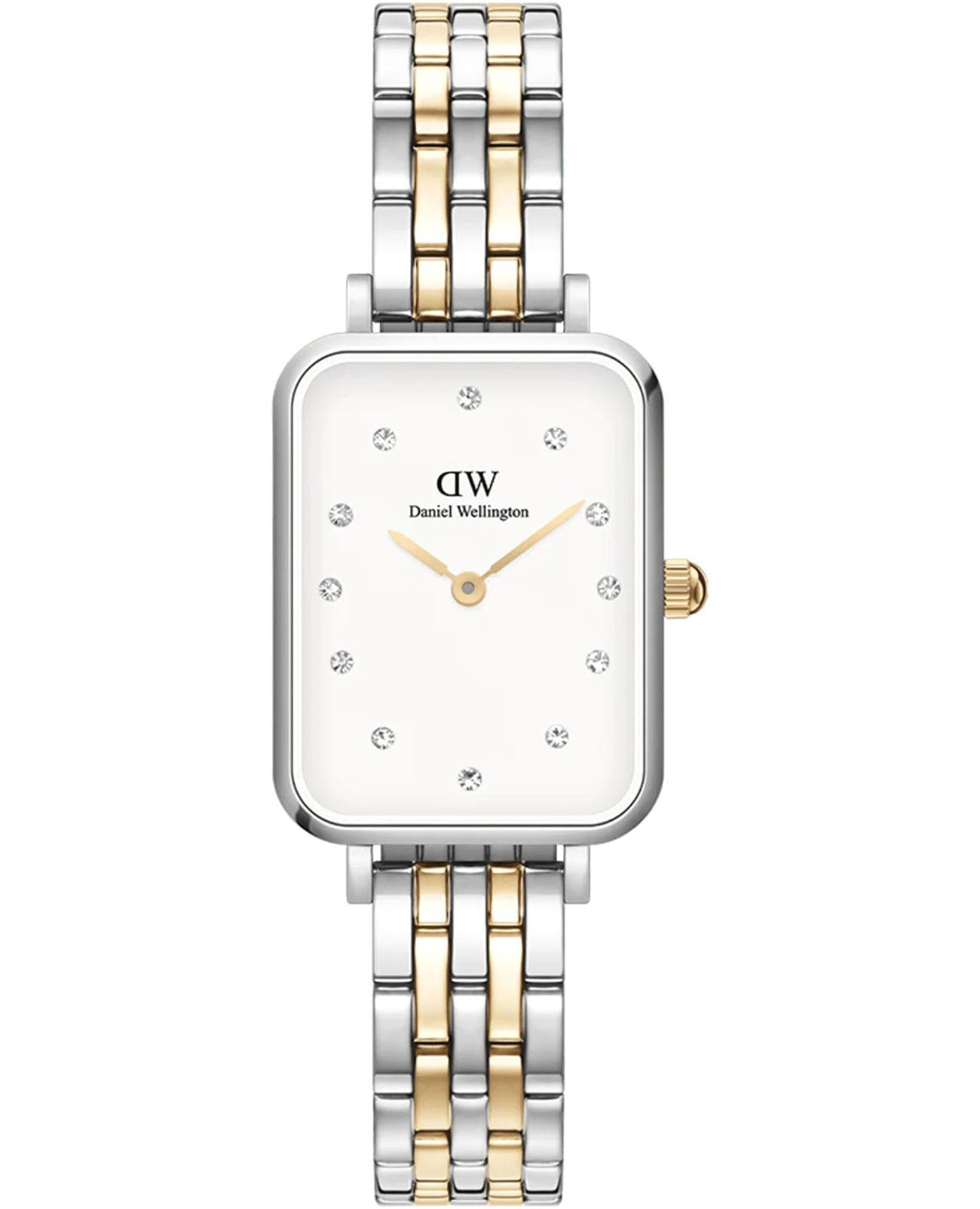 Женские наручные часы с минеральным стекломМинеральное стеклоМинеральное стекло представляет собой искусственно выращенный минерал кварца. Такое стекло отличается особой устойчивостью к повреждениям и царапинам. Уступает по некоторым качествам сапфировому стеклу. Daniel Wellington Quadro DW00100625, кварцевый механизм с высокой точностью. Корпус часов изготовлен из нержавеющей стали 316L. Циферблат инкрустирован кристаллами. Японский кварцевый механизм. Рифленая заводная головка. Класс водозащиты: 30 метров, позволит защитить корпус от случайных брызг или капель дождя. Стальной браслет с частичным PVD-покрытиемPVDУльтратонкое покрытие наносится в технике вакуумного напыления, сочетает в себе нитрид титана особой прочности со слоем золота или оксида хрома. Несёт в себе декоративную или защитную функцию. на застежке бабочкеЗастёжка "бабочка"Такой вид застёжки дополняется предохранителями, помогающими избежать случайного раскрытия браслета. Обладают изящным исполнением. .